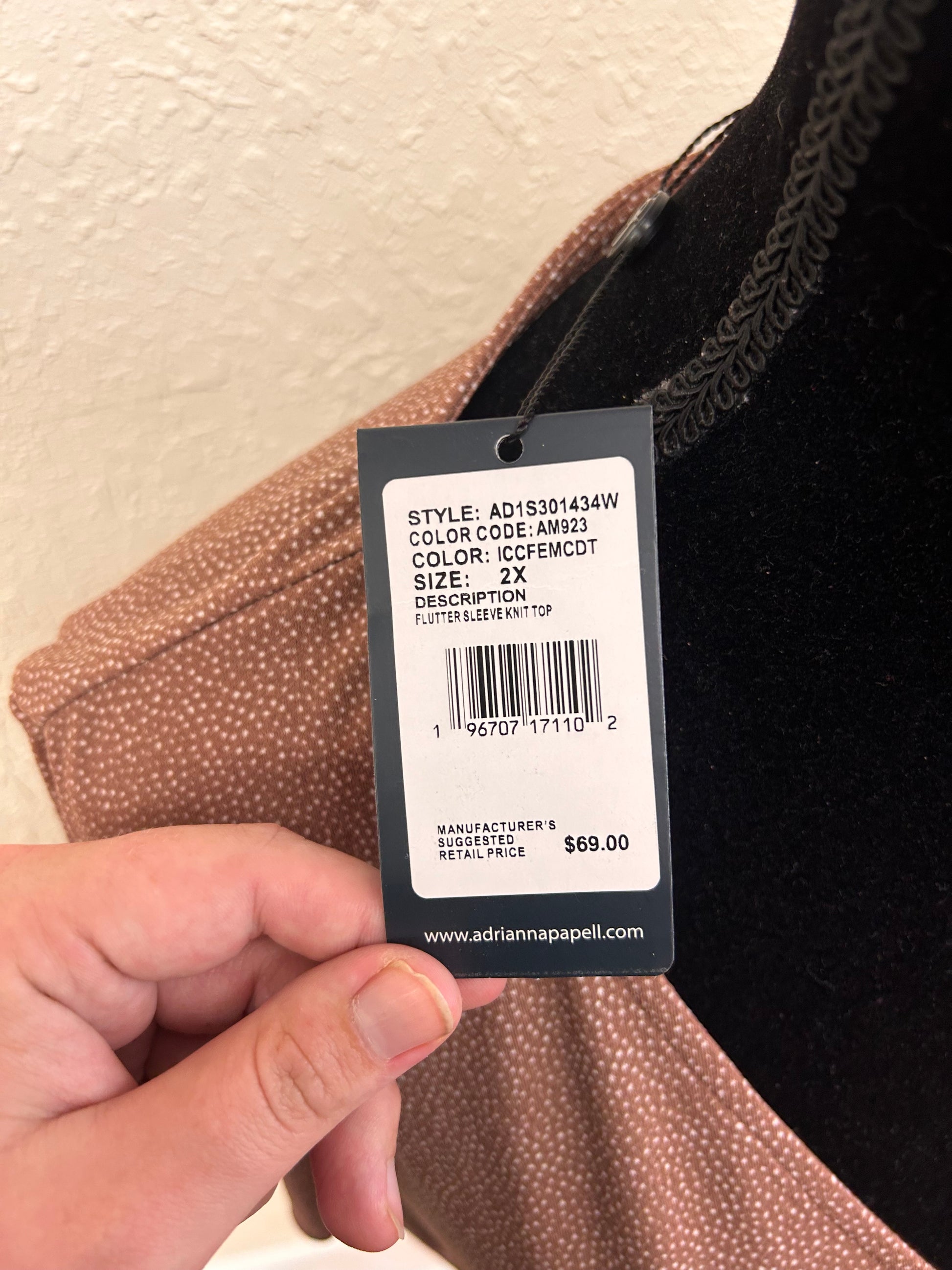 Adrianna papell brand. Shirt ruffle sleeve blouse. Brown & white polka dot. Size 2x. Brand new with tags