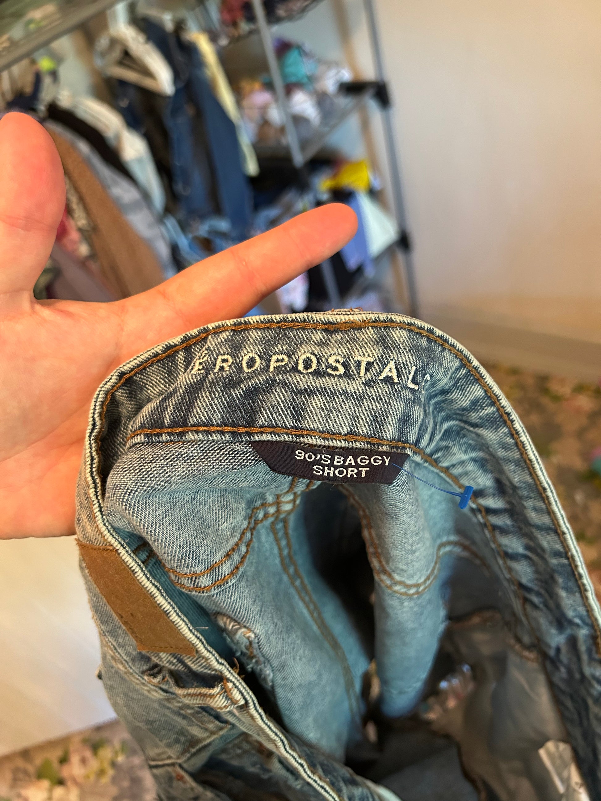 Aeropostale brand. 90s baggy distressed denim shorts. Light wash denim. Size women’s 14. Brand new condition