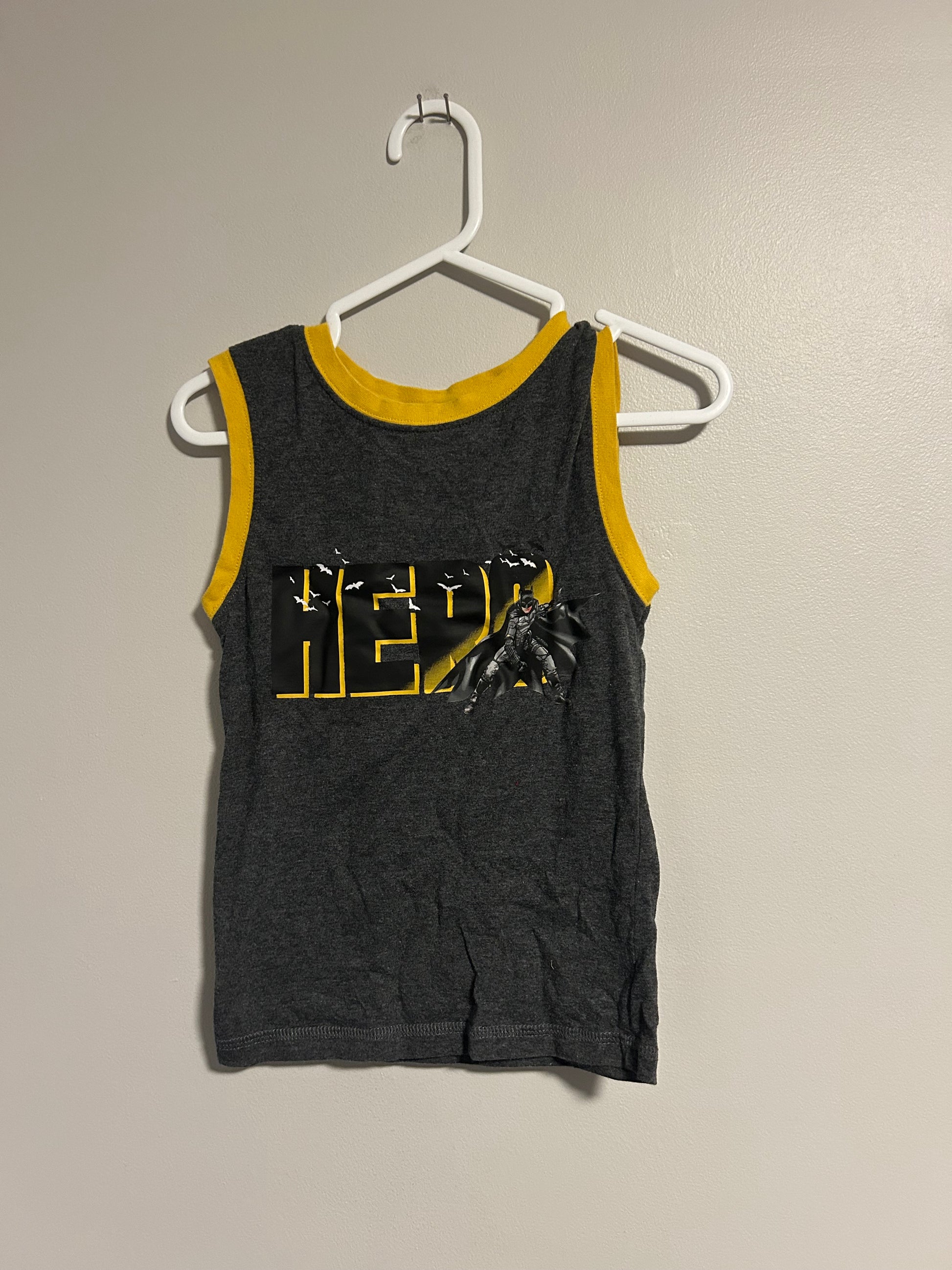 Batman boys 6 grey & yellow tank top