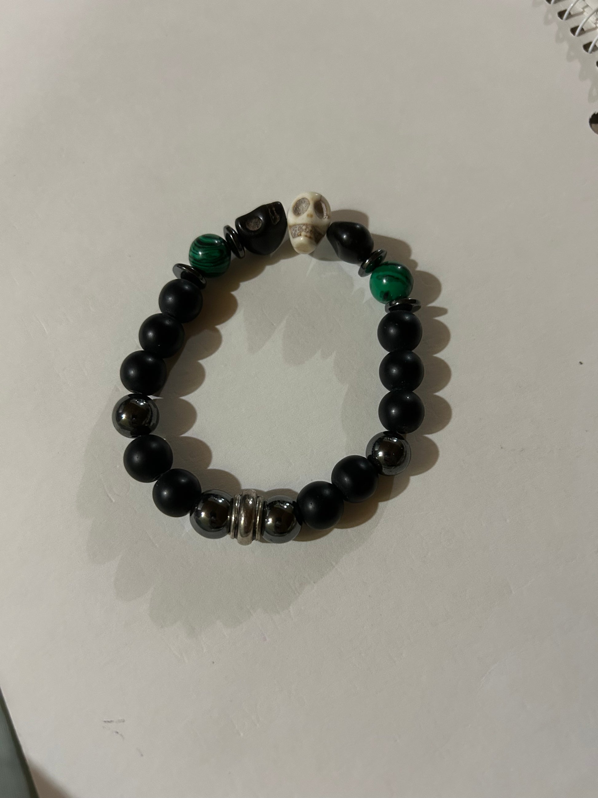 Black & green skull beaded bracelet