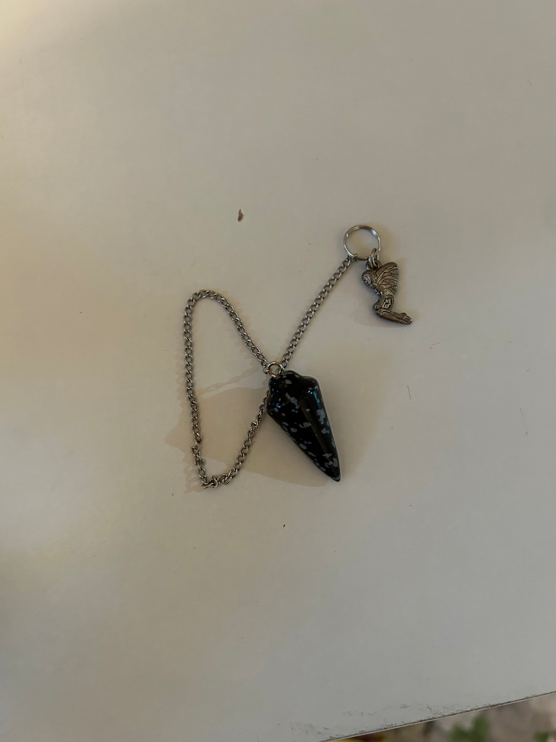 Handmade by Kitty r designs. BLue crystal with fairy charm pendulum. Brand new