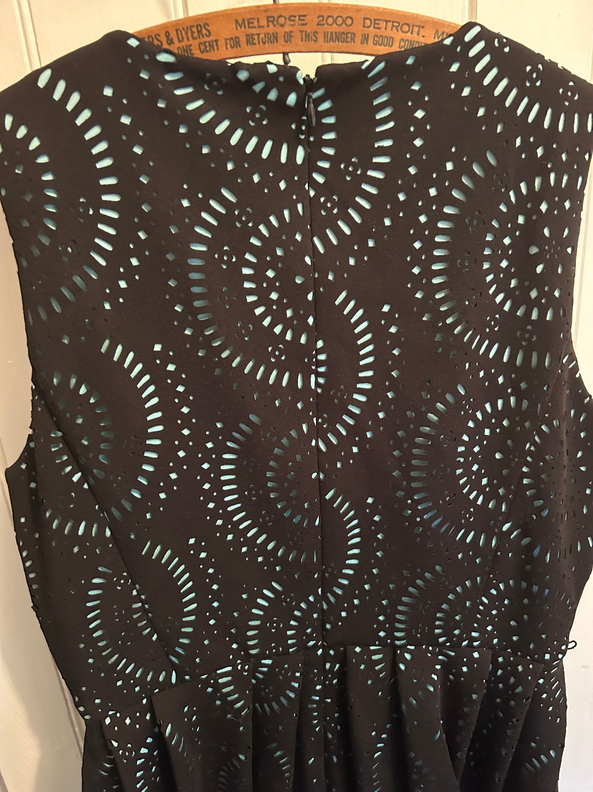 Calvin Klein brand. Sleeveless Aline dress. Black lace like cutout with teal underneath. Loops for belt, but belt not included. Size women’s 12. Brand new condition