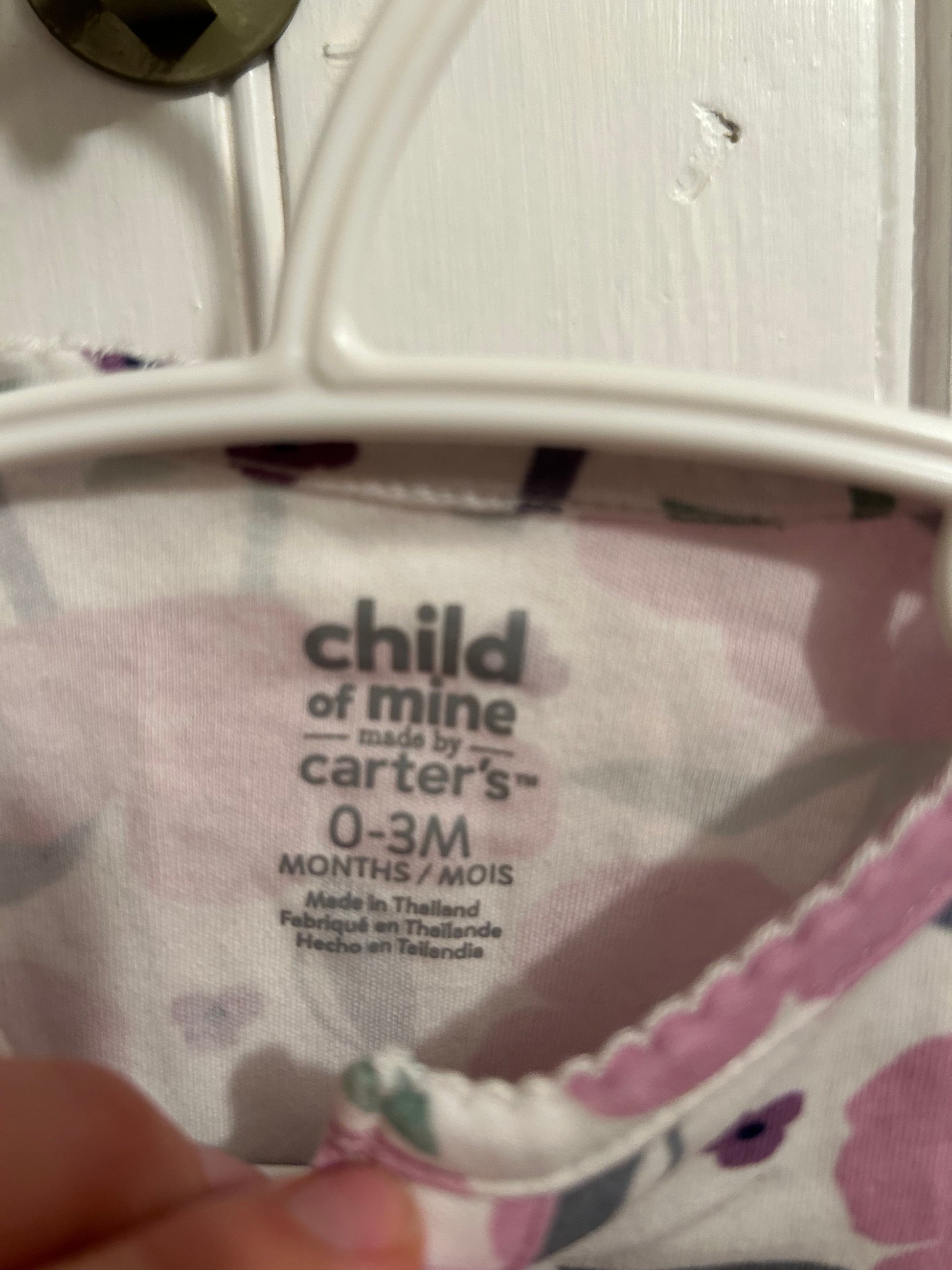 Carters beans. Long sleeve onesie. Purple floral. 100% cotton. Size 0/3m. Brand new condition