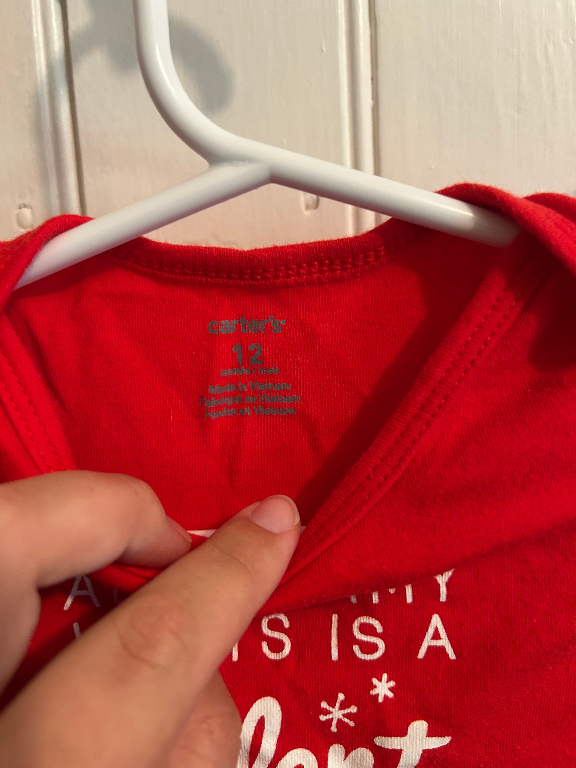 Carters Brand. Long sleeve onesie. Red with silent night graphic. Size 12m. Brand new conditionÂ
