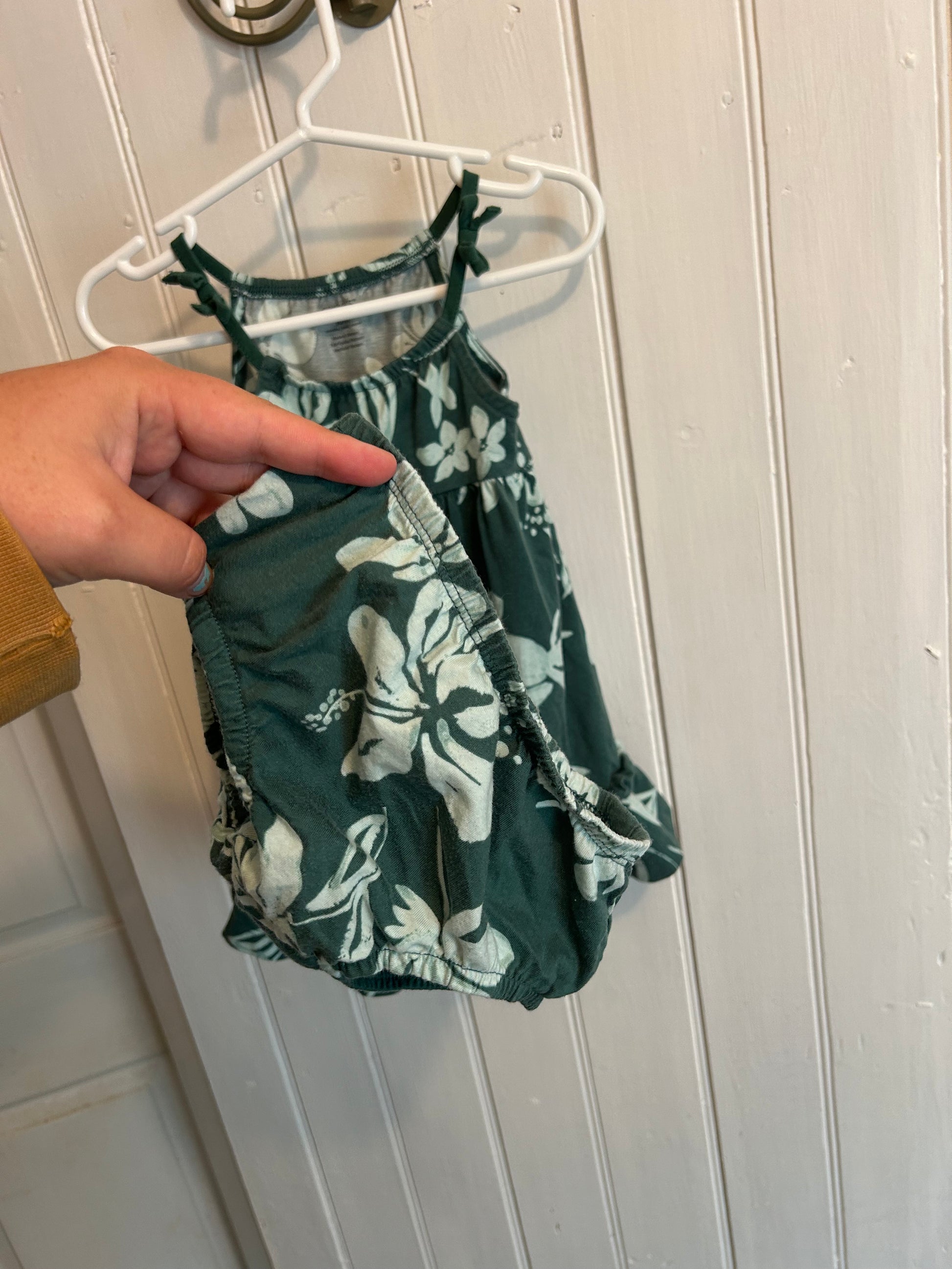Carters brand. Spaghetti strap dress with matching bunnies. Green floral. Size 18m. Brand new condition
