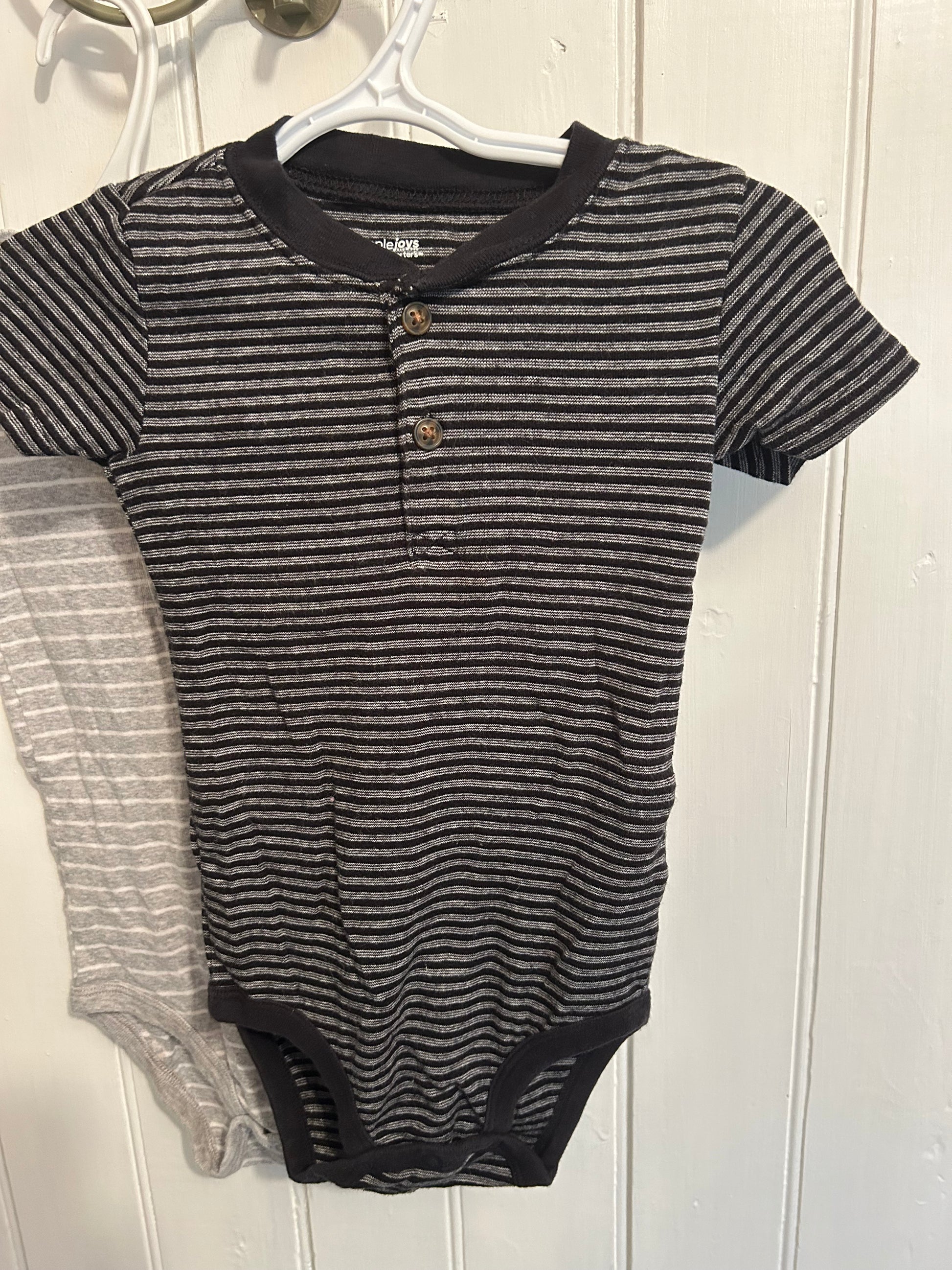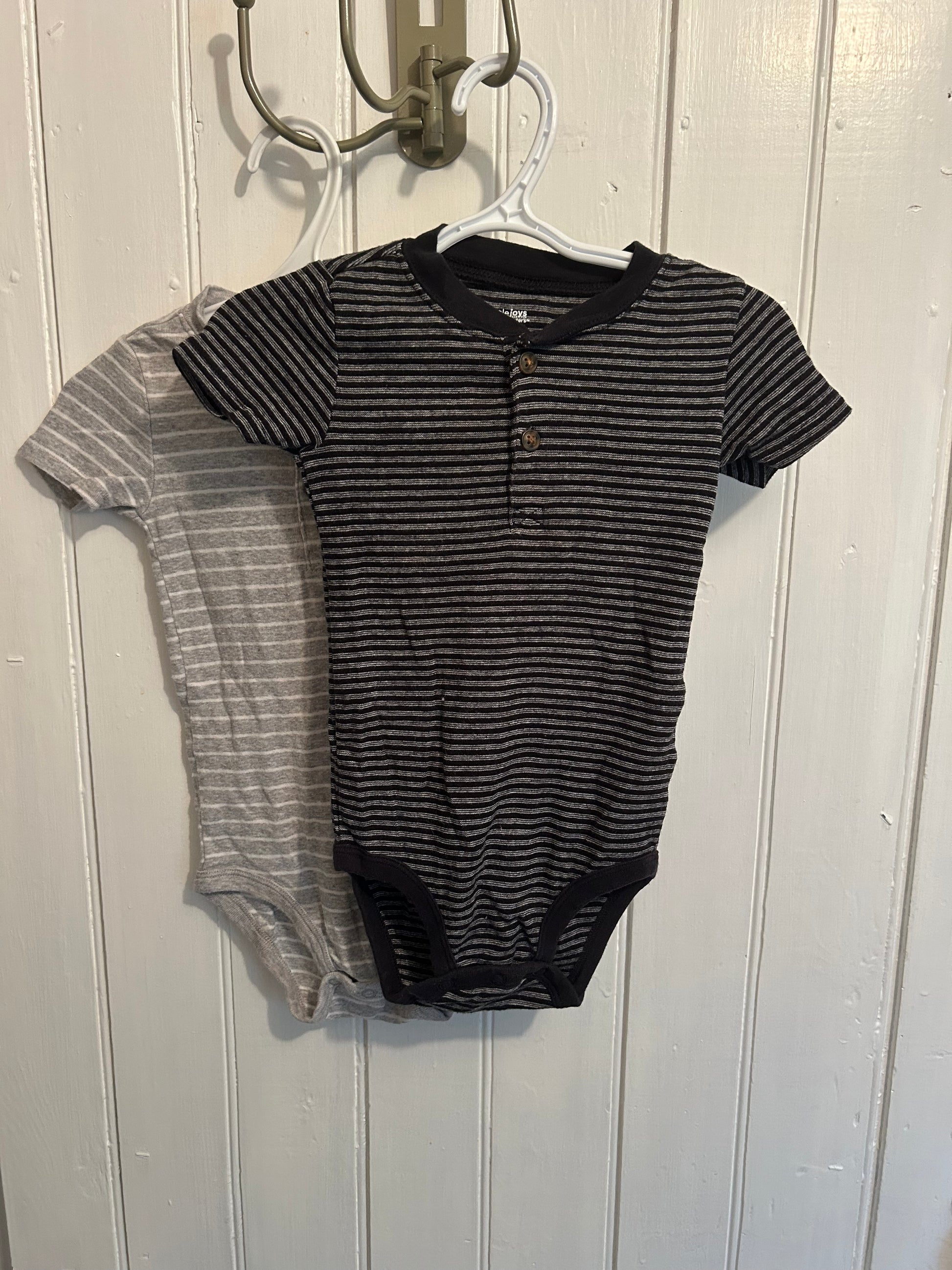 Carters brand. Bundle of 2 short sleeve onesie. One grey striped and one black striped. Size 24m. Brand new conditionÂ