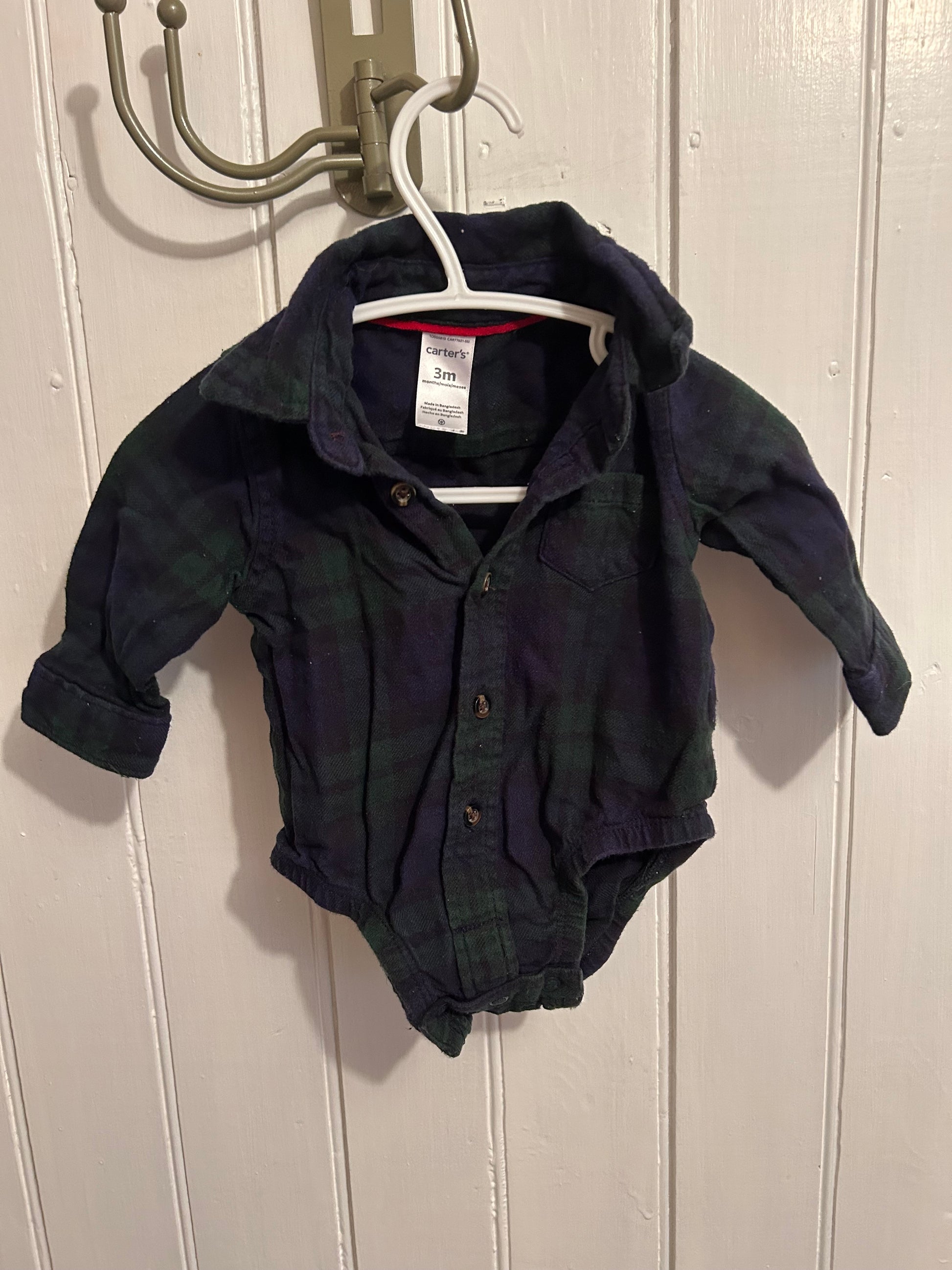 Carters brand. Long sleeve button up flannel onesie. Green & blue plaid. Size 3m. Brand new condition