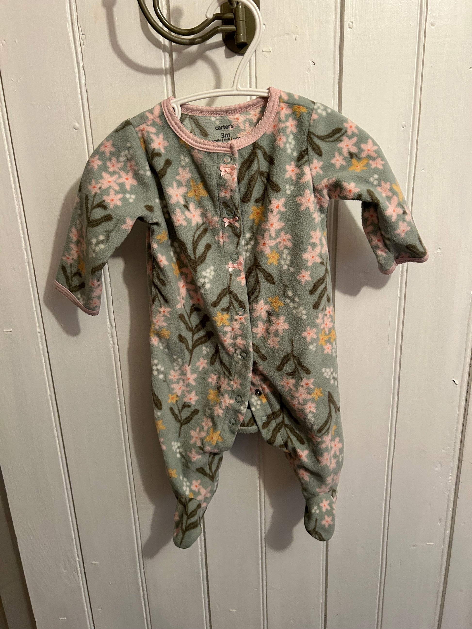 Carters brand. Button up fleece sleeper. Sage green, pink & yellow floral print. Size 3m. Brand new conditionÂ