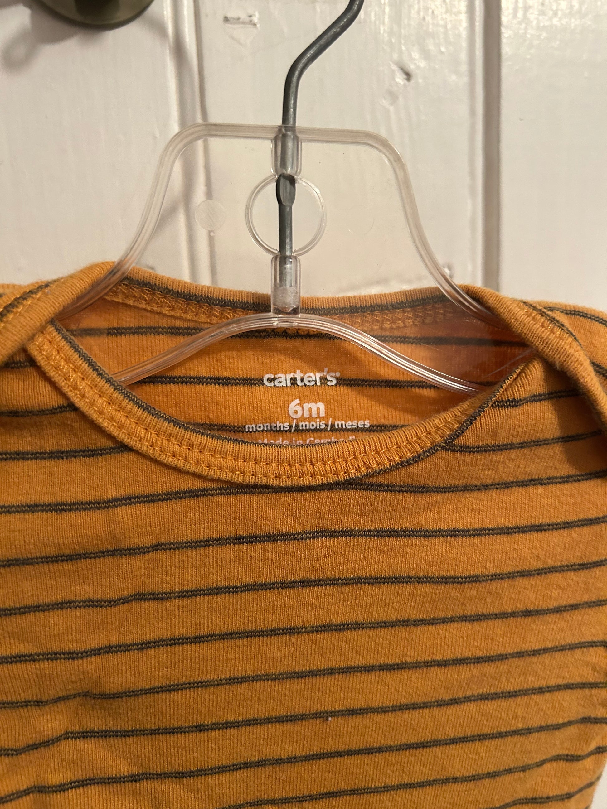 Carters brand. Short sleeve onesie. Orange with brown stripes. Size 6m. Brand new conditionÂ