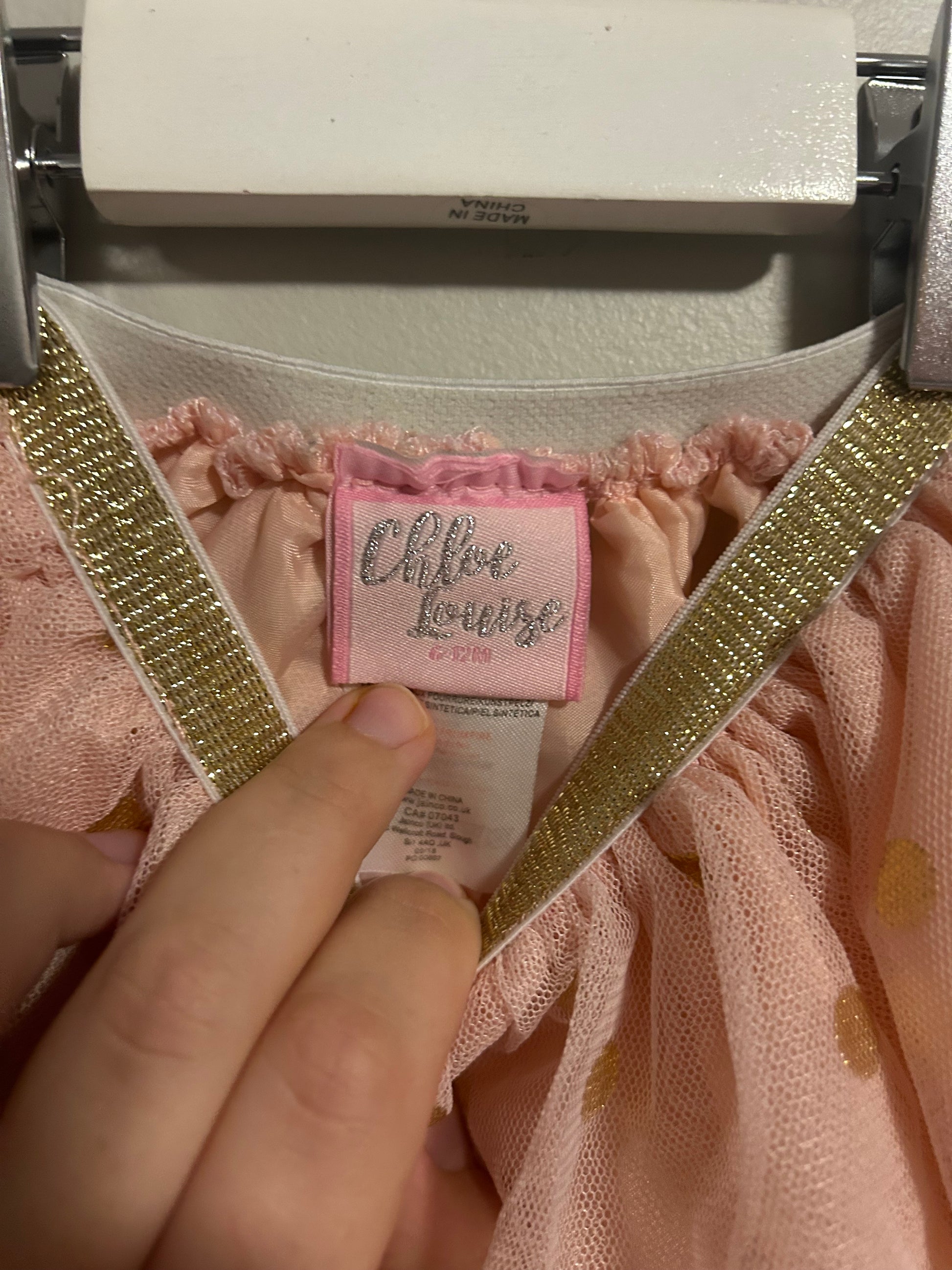 Chloe Louise 6/12m pink & gold polka dot tulle skirt