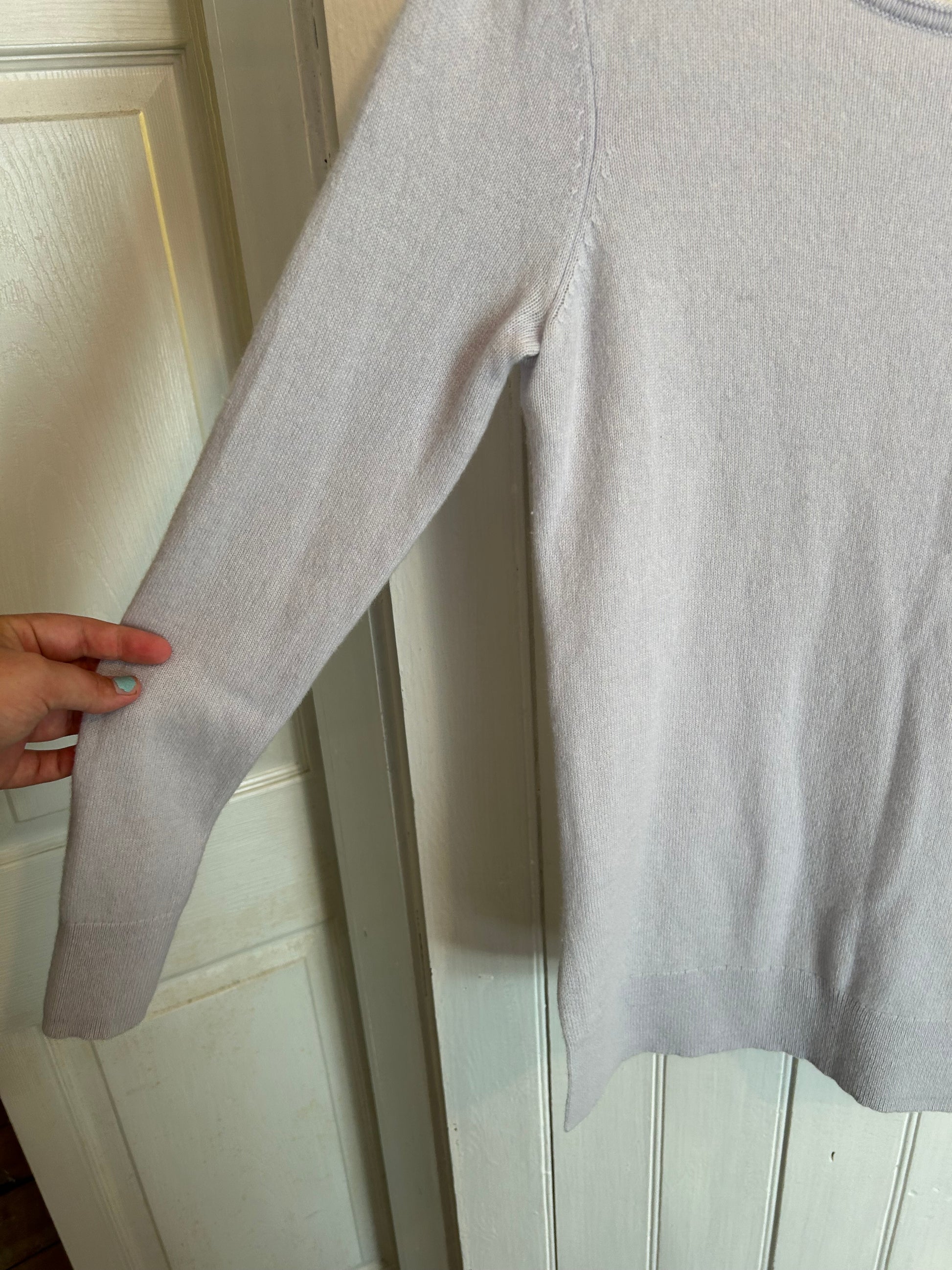 Club Monaco brand cashmere line. Super soft knit sweater with side cuts. Light blue with off white back. Size medium. Brand new condition
