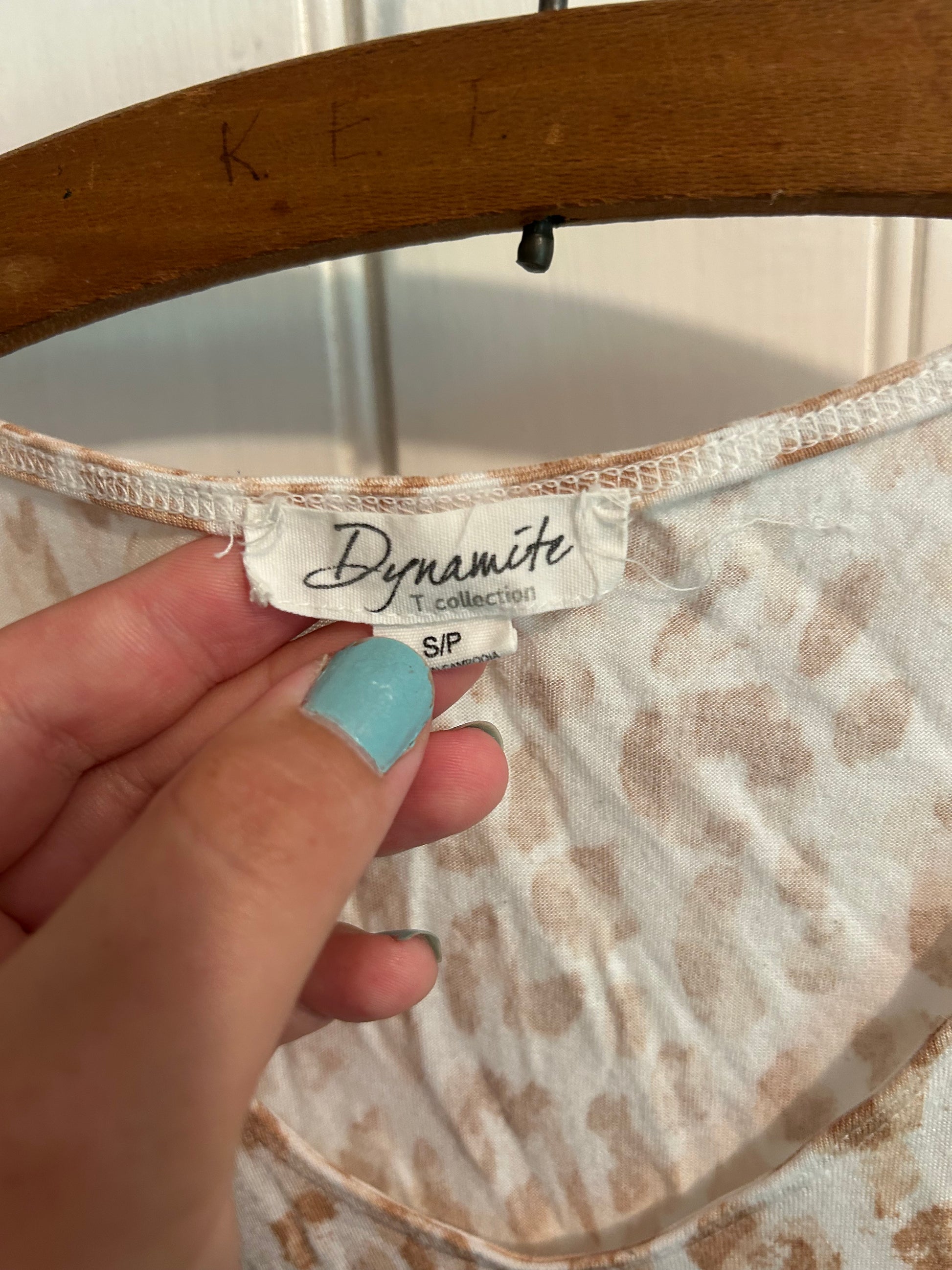Dynamite brand. Short sleeve T-shirt. Tan & white cheetah print. Size small. Brand new condition