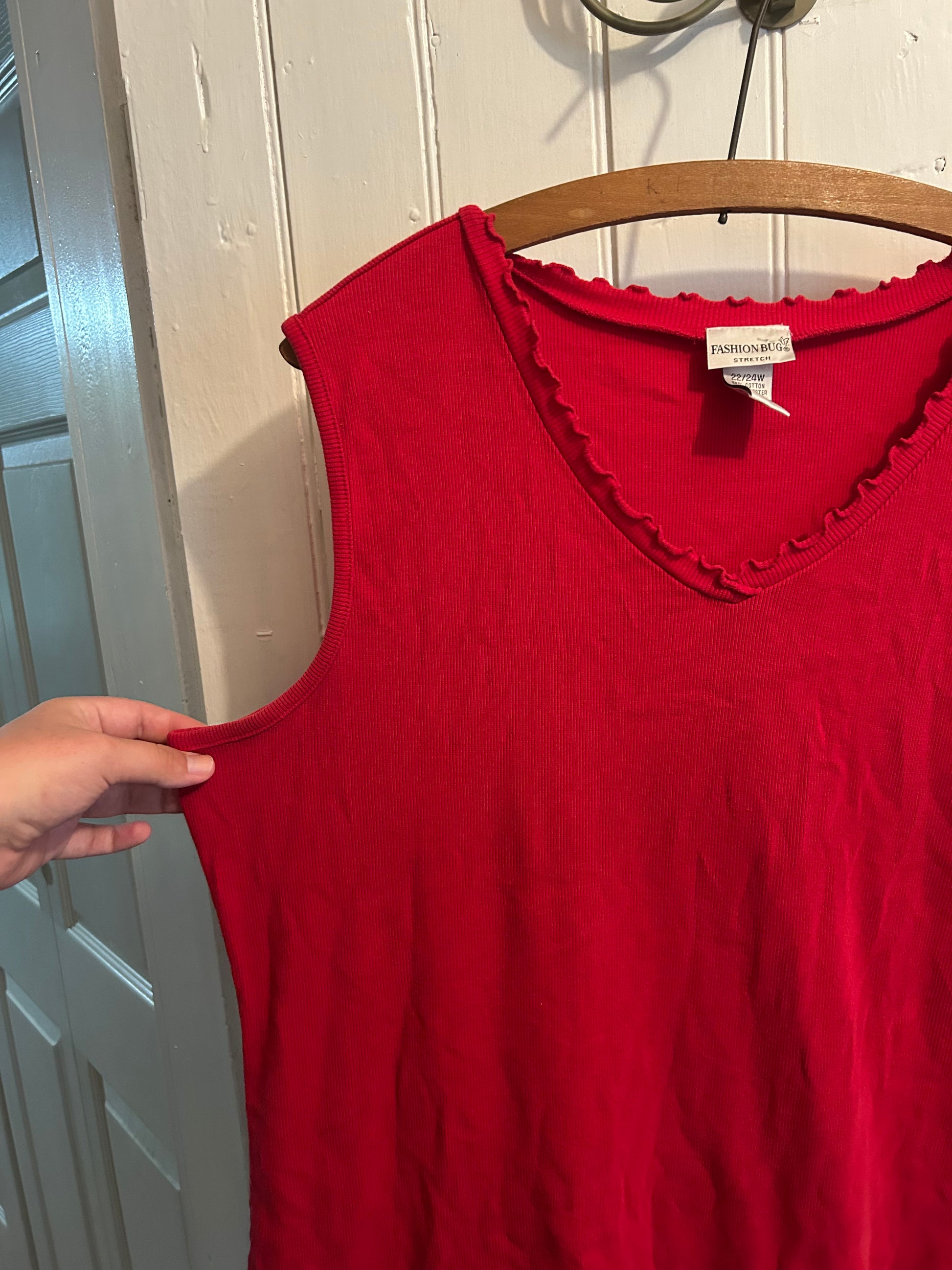 Fashion bug brand. Scalloped edge vneck tank top. Red ribbed. Size plus 22/24W. Brand new condition