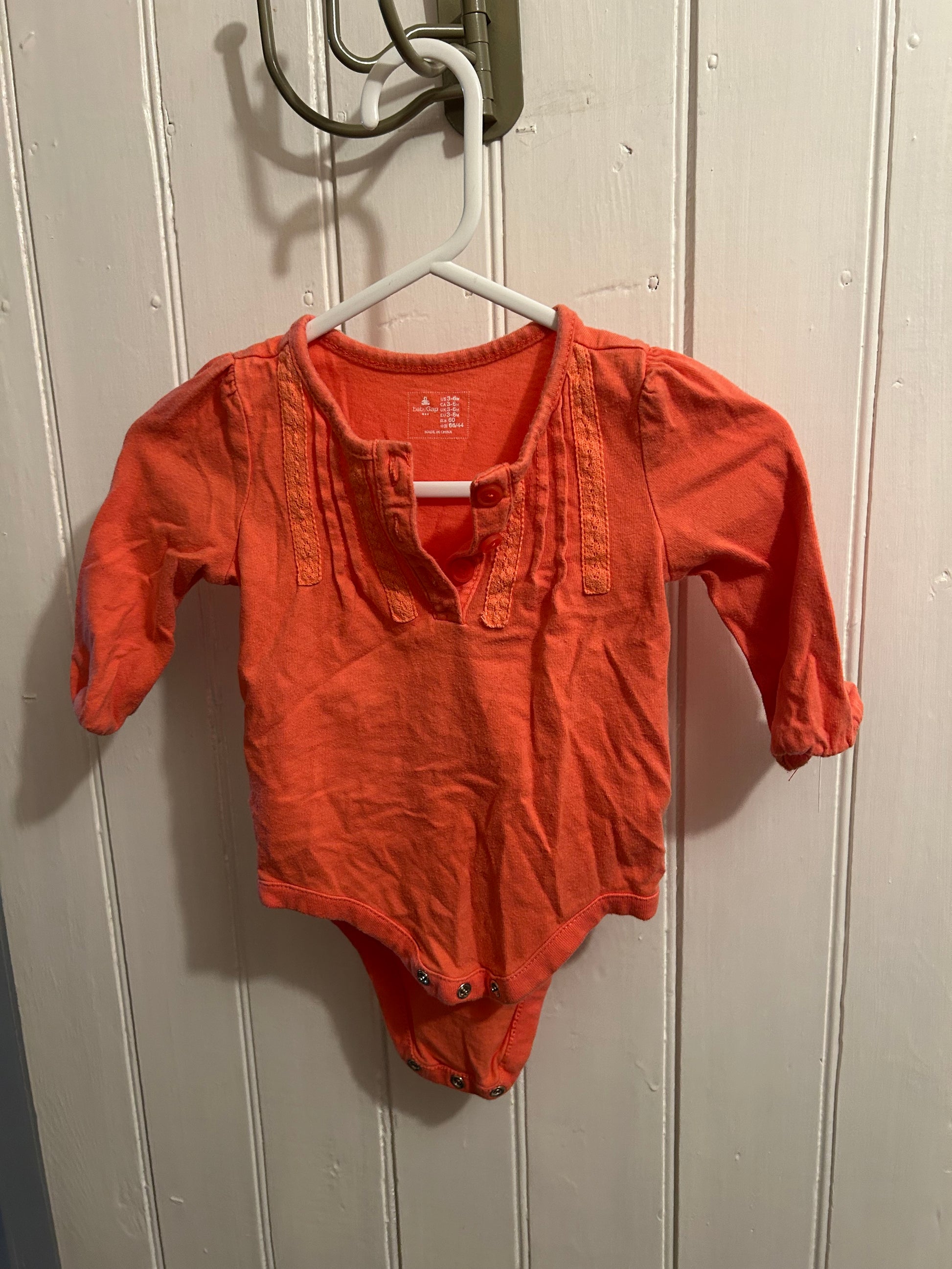 Gap brand. Long sleeve onesie with lace neck detail. Peach in colour. Size 3/6m. Brand new condition