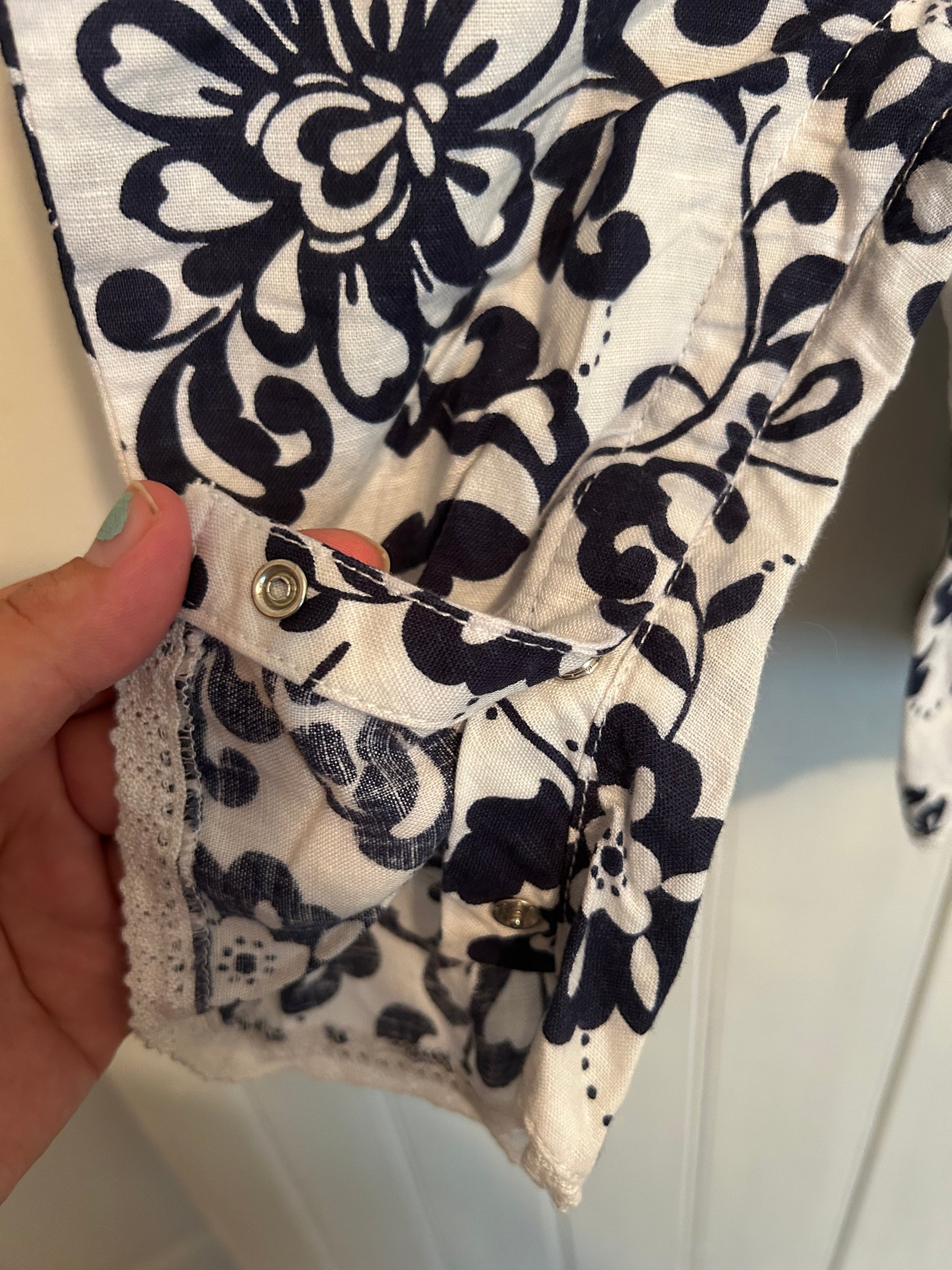 GAO brand. Flare leg linen pants. Black & white floral. Size 6/12m. Brand new condition