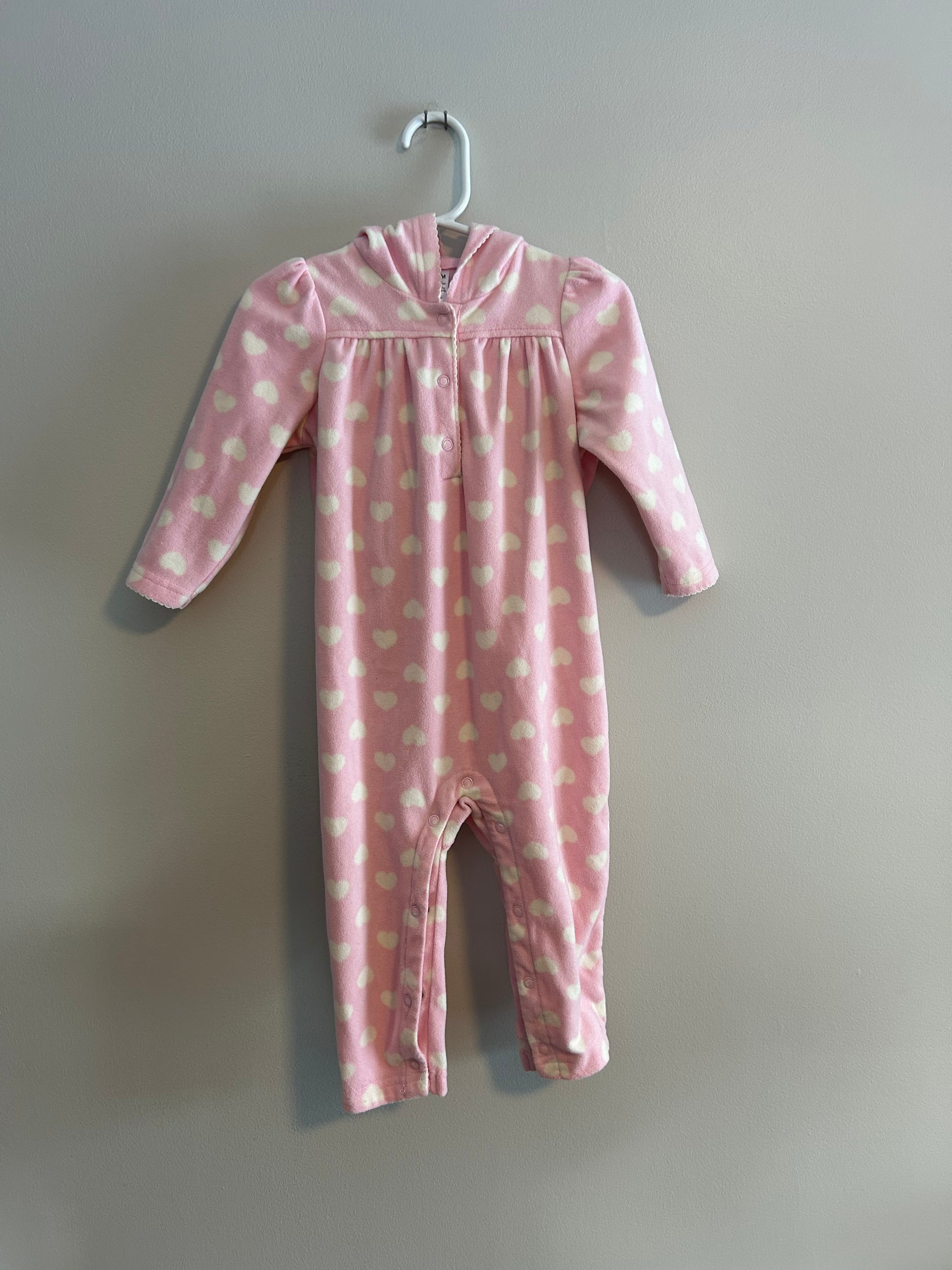 George brand. Fleece hooded sweater romper. Pink with white heart print. Size 18/24m. Brand new conditionÂ