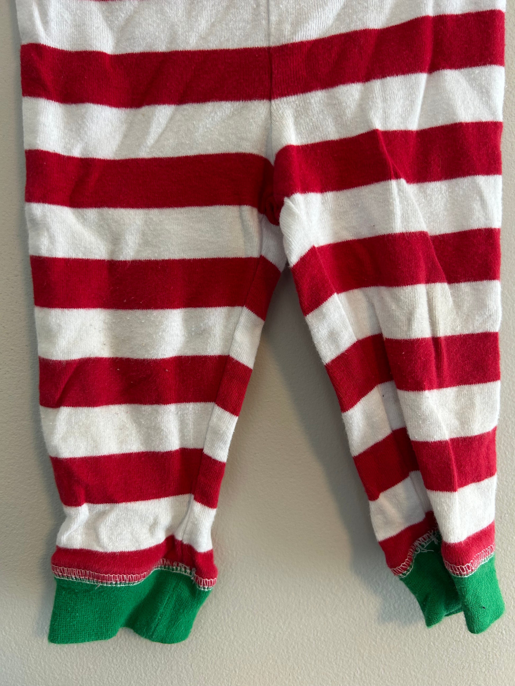 George brand. 2pc sleep set of long sleeve shirt and pants. Red and white striped with green Santa’s helper. Size 6/12m. Brand new condition minus light wash wear on knees.