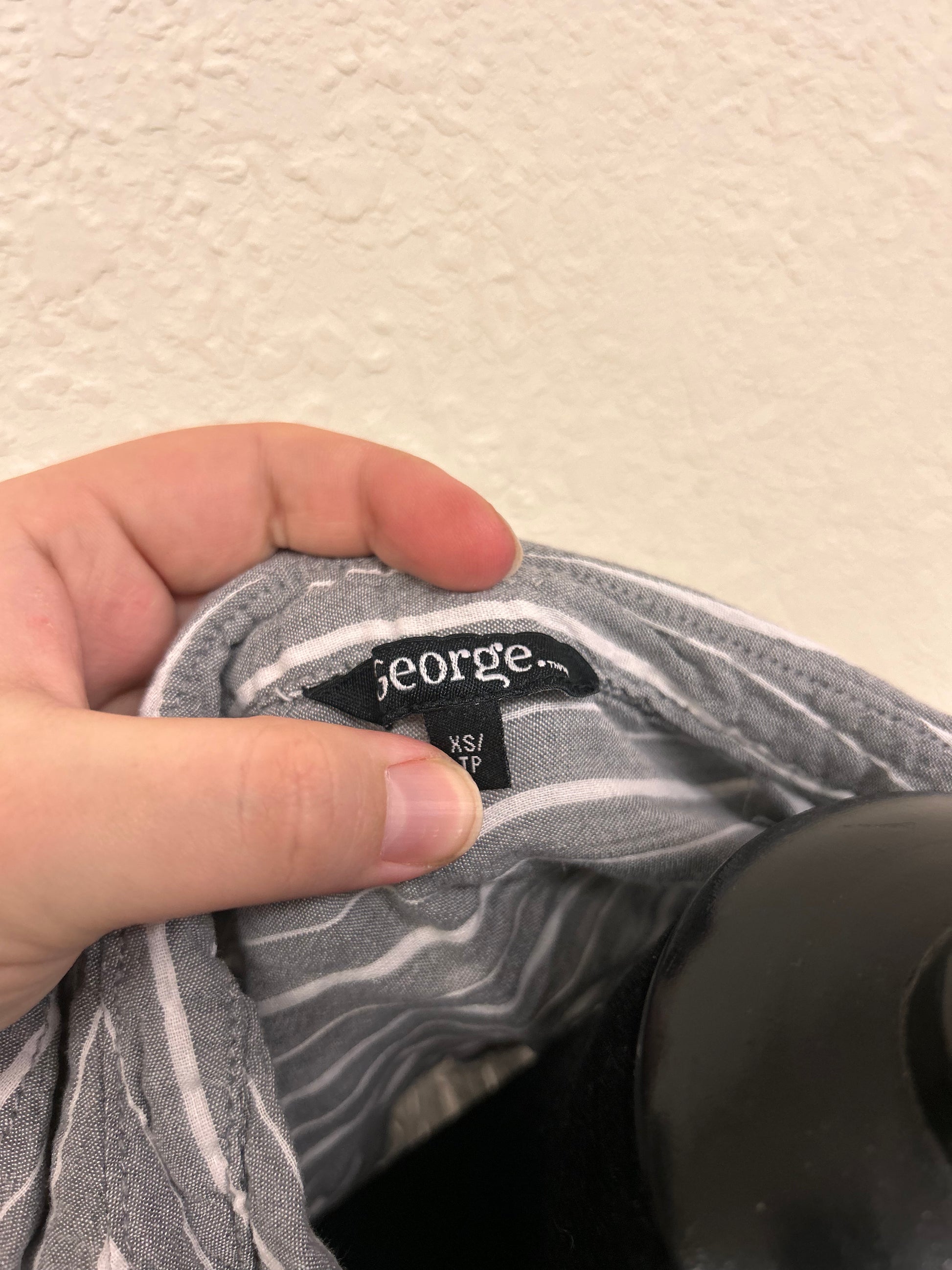 George brand. Short sleeve button up shirt. Grey & white striped. Size women’s xs. Brand new condition