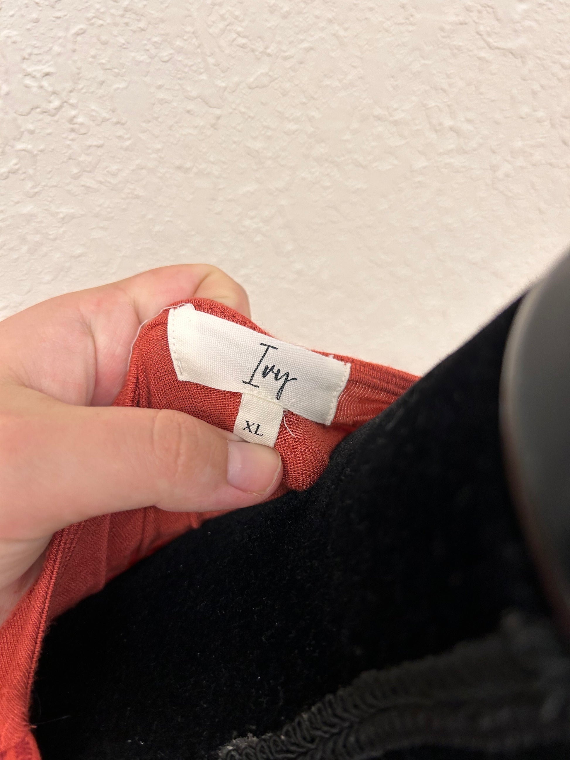 Ivy brand. Short sleeve vneck blouse. Burnt orange with embroidery neckline. Size xl. Brand new condition