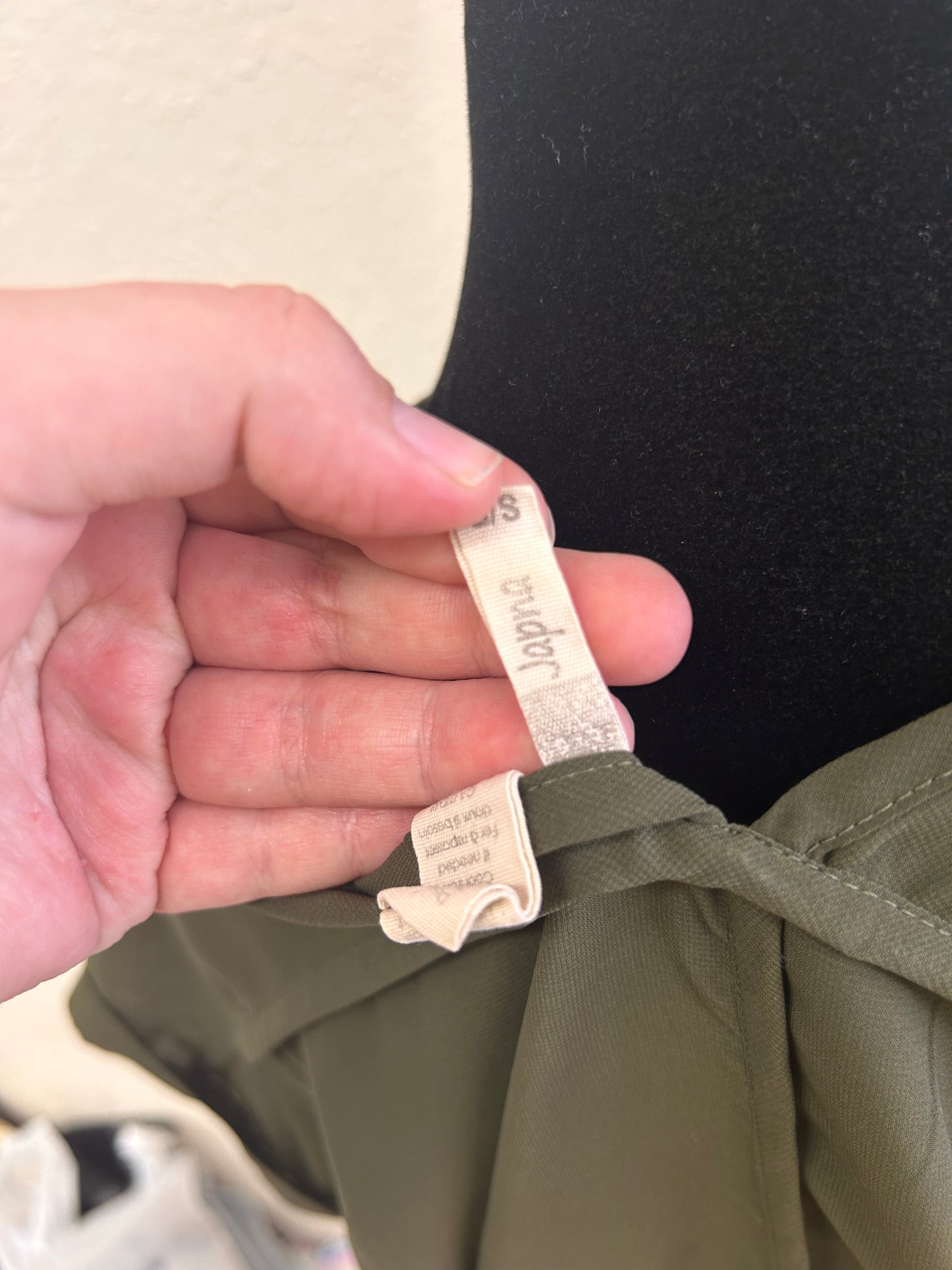 Japna brand. Vneck short sleeve blouse. Olive green sheer material. Size small. Brand new condition