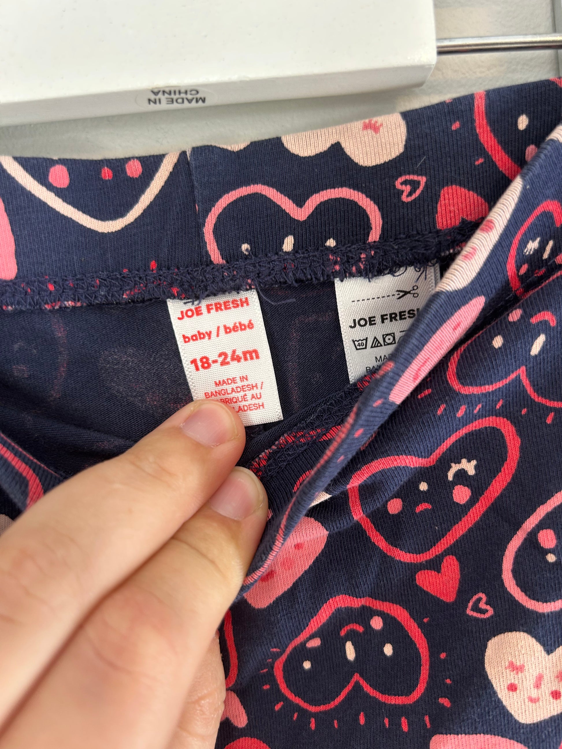 Joe fresh brand. Navy blue leggings with pink & red heart print. Size 18/24m. Brand new conditionÂ