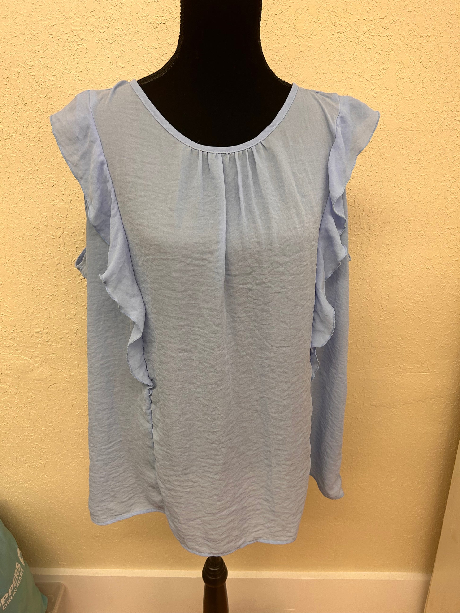 Joe fresh brand. Sleeveless ruffle tank blouse. Light blue in colour. Size 1x. Brand new condition