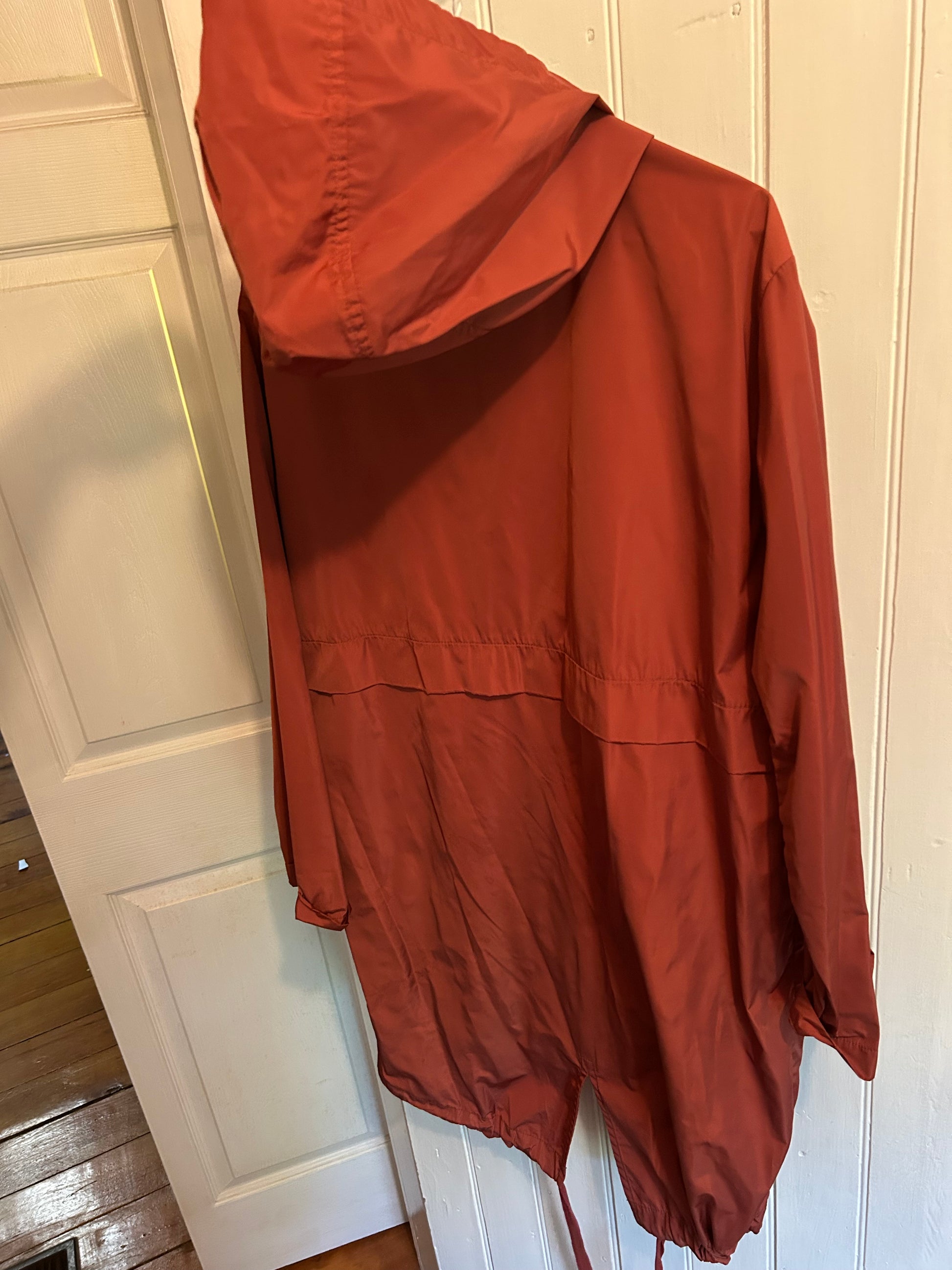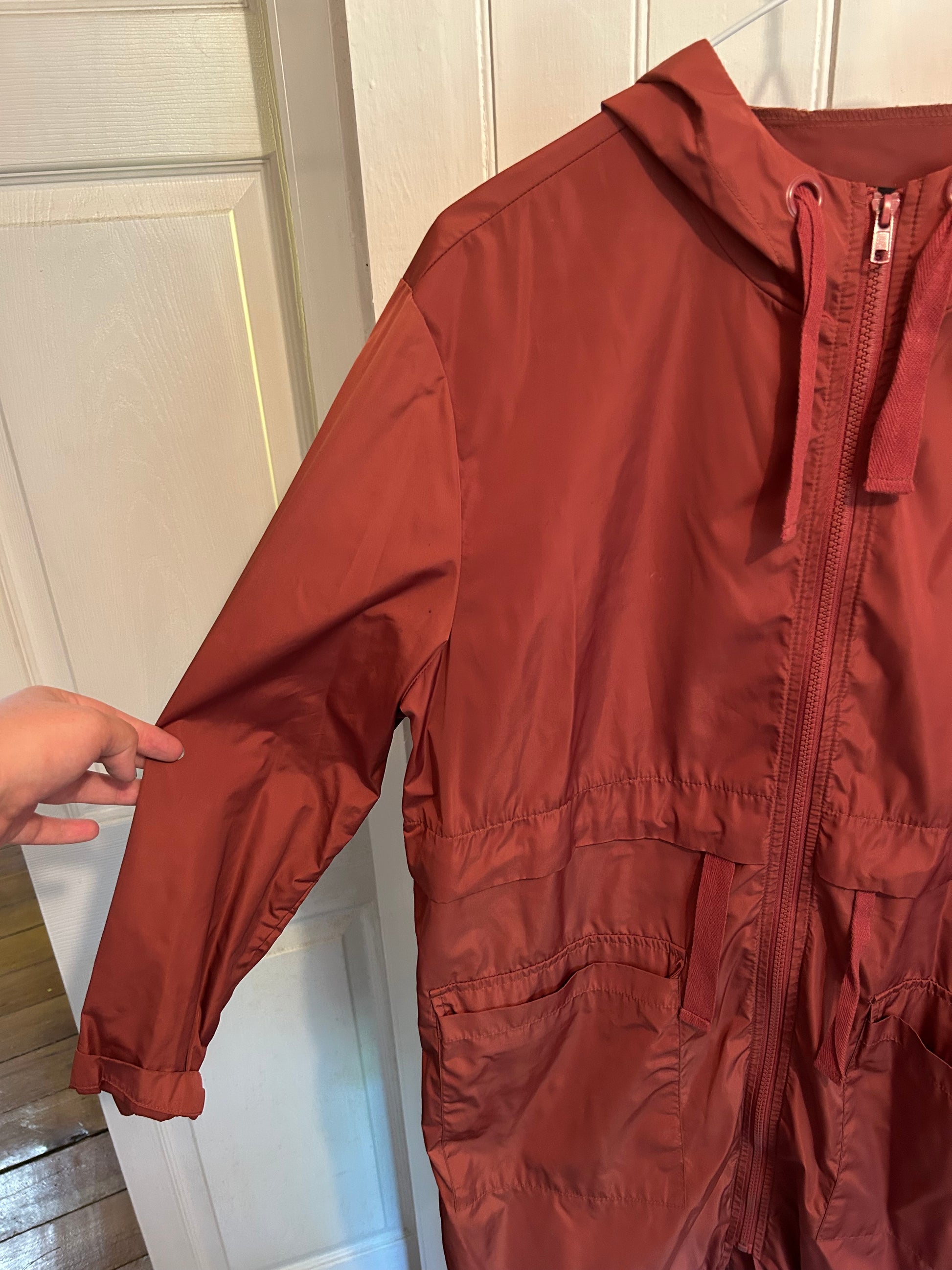 Forever 21 brand. Unlined rain jacket. Zip up & hooded. Red in colour. Size small. Brand new condition