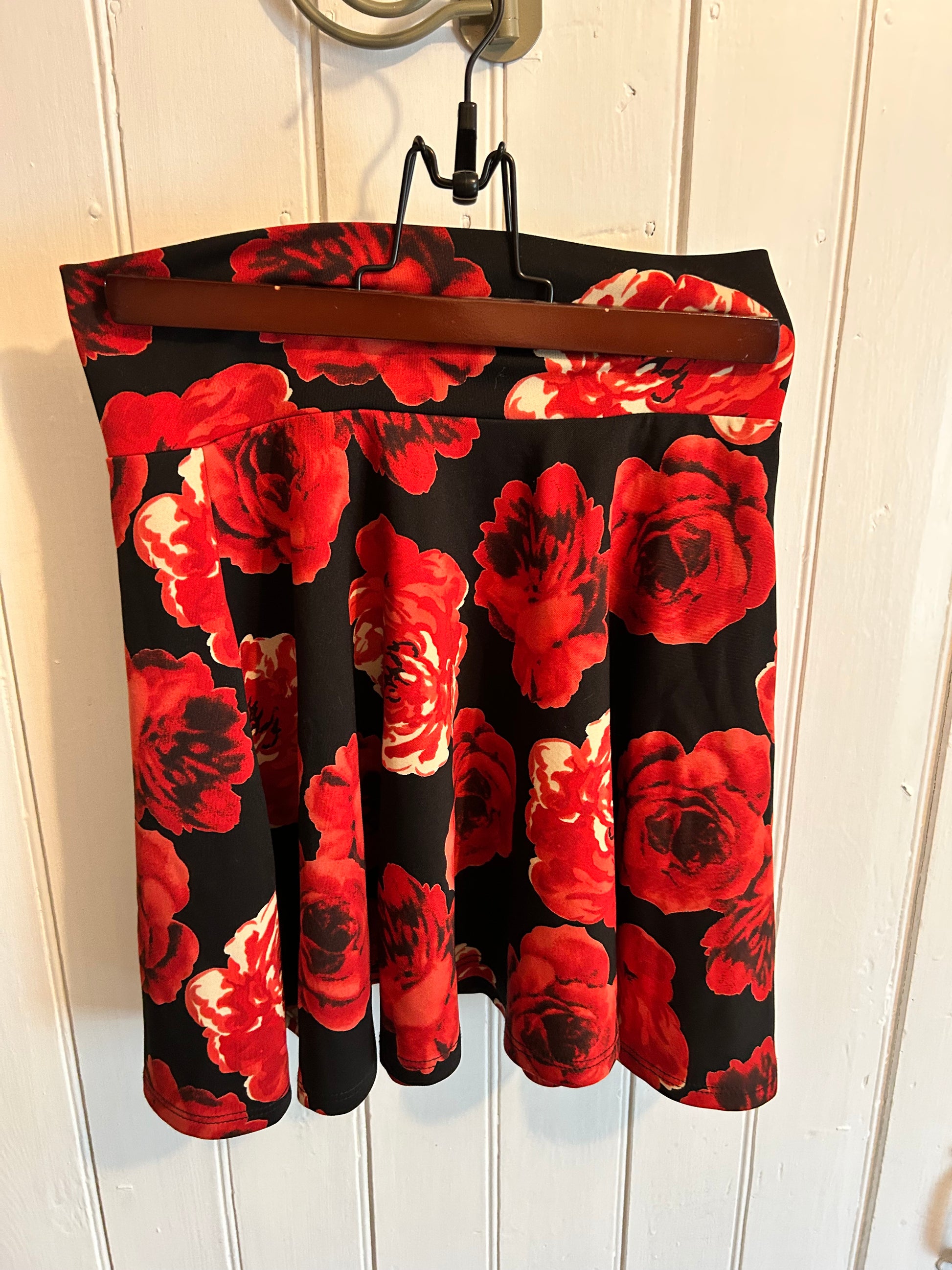 Joyce brand. Aline skirt. Black with red floral print. Size medium. Brand new condition