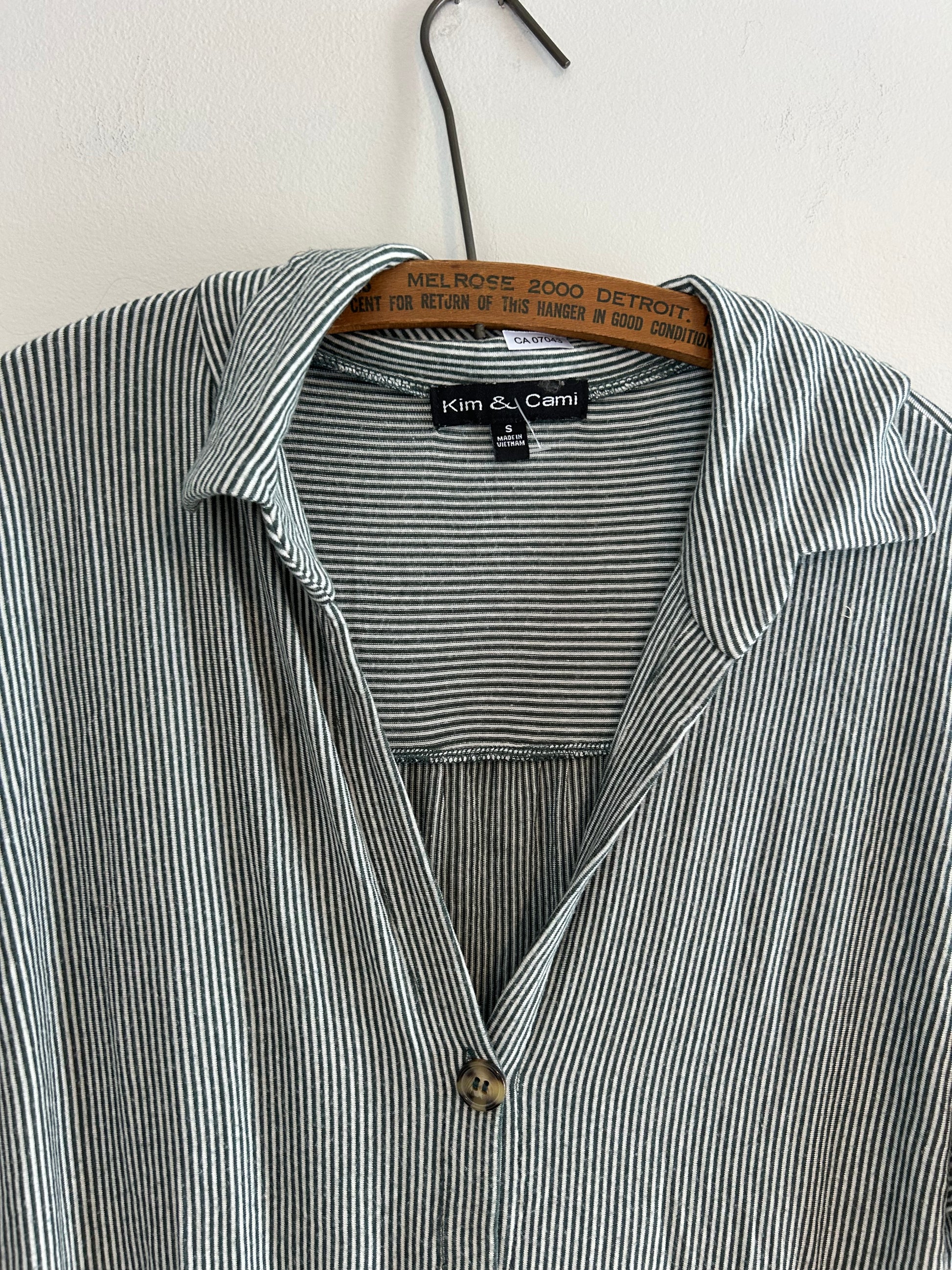 Kim and cami brand. Collard short sleeve button up tie hem shirt. Green & white stripes. Size small. Brand new condition