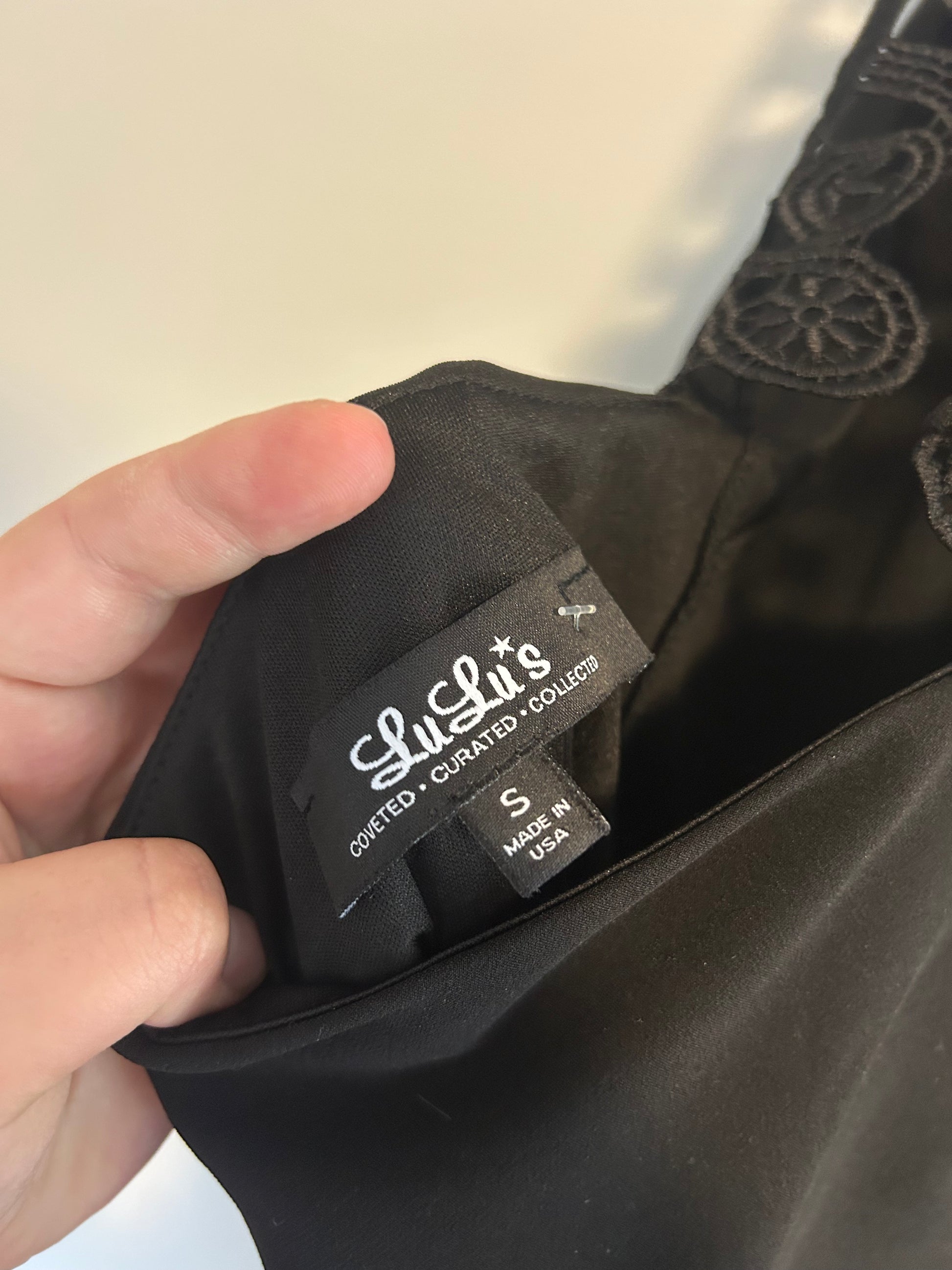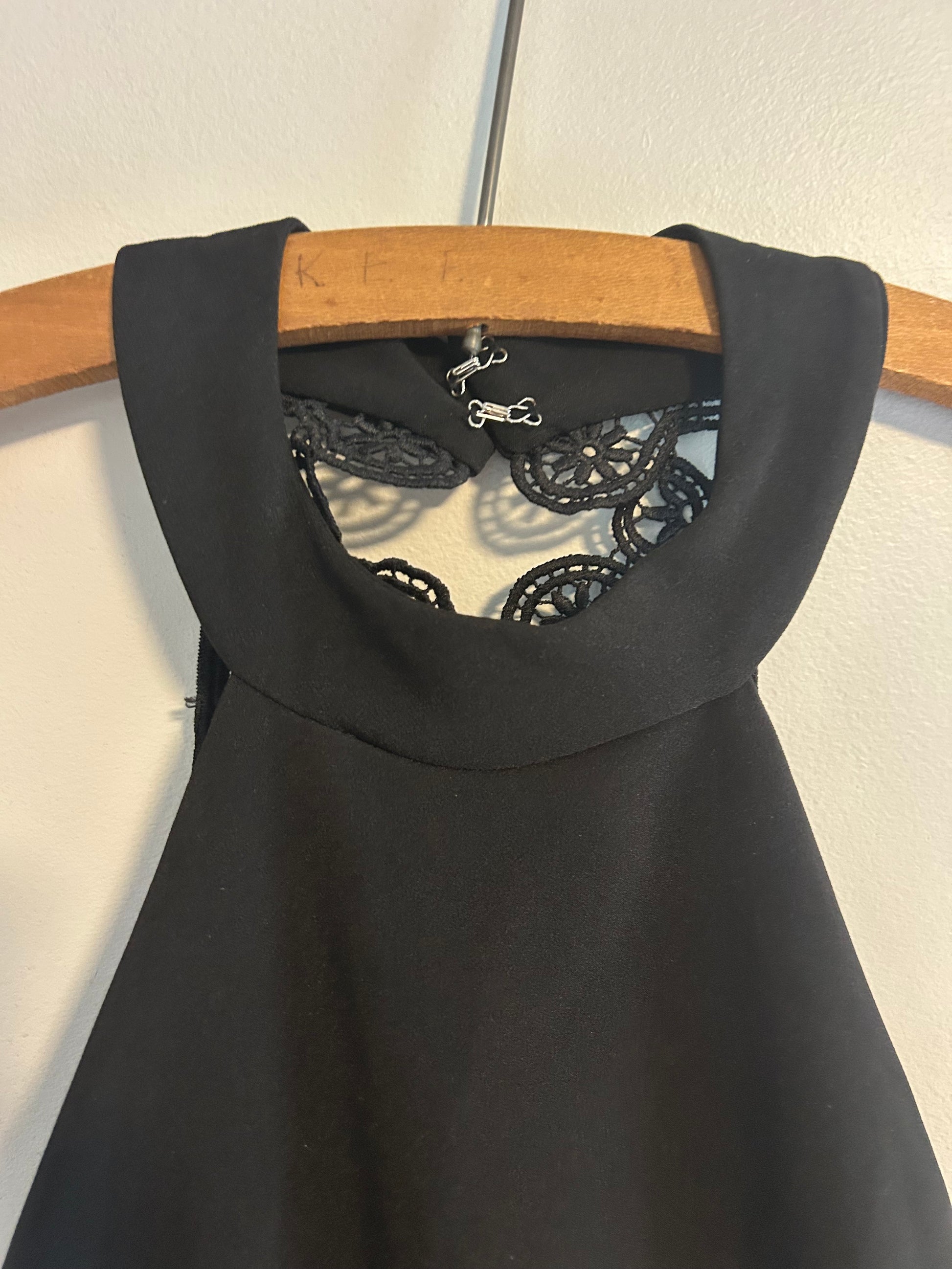 Lulus brand. High neck sleeveless mini dress with lace open back. Black in colour. Size small. Brand new condition