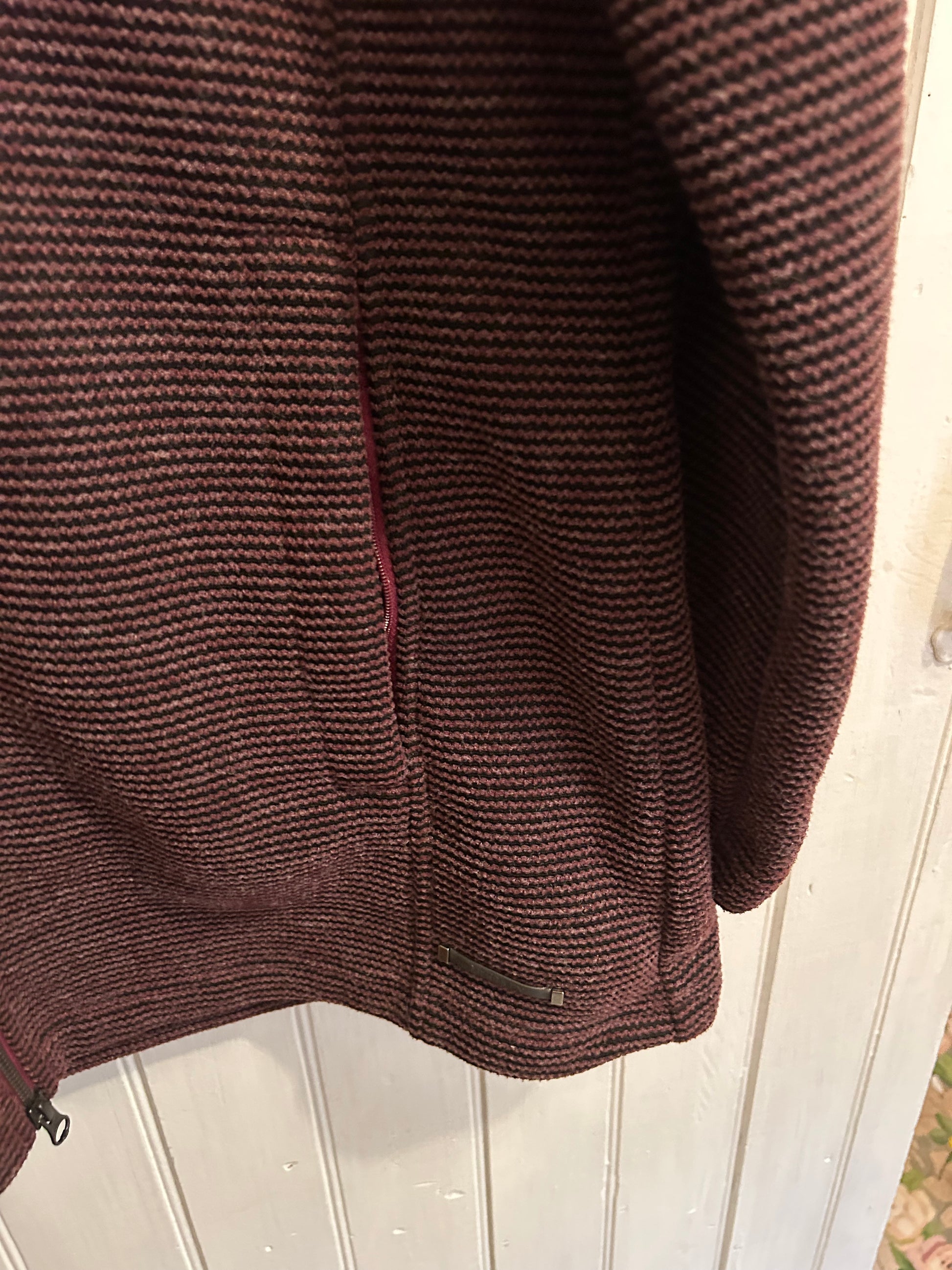 Mckinley brand. Zip up collard lightweight jacket (fall/spring). Fleece lined. Not water resistant. Purple-burgundy rib knit like material. Size large. Brand new condition