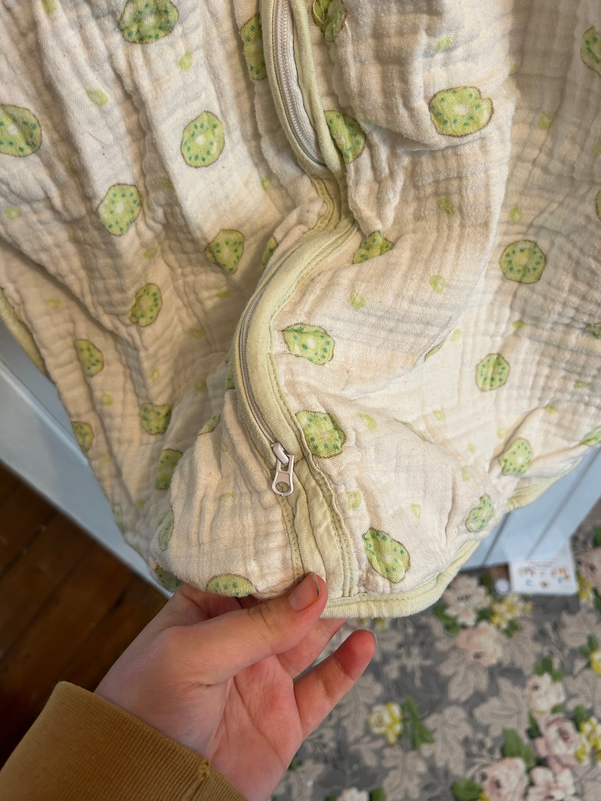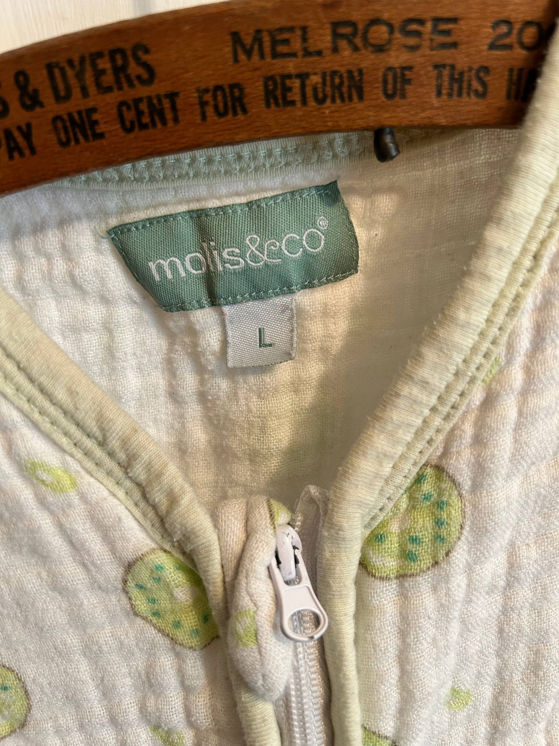 Molis & co brand. Dual zipper medium weight sleep sack. Bamboo & cotton blend. White with green kiwi like print. Labeled size large; fits like 12/24m. Brand new conditionÂ