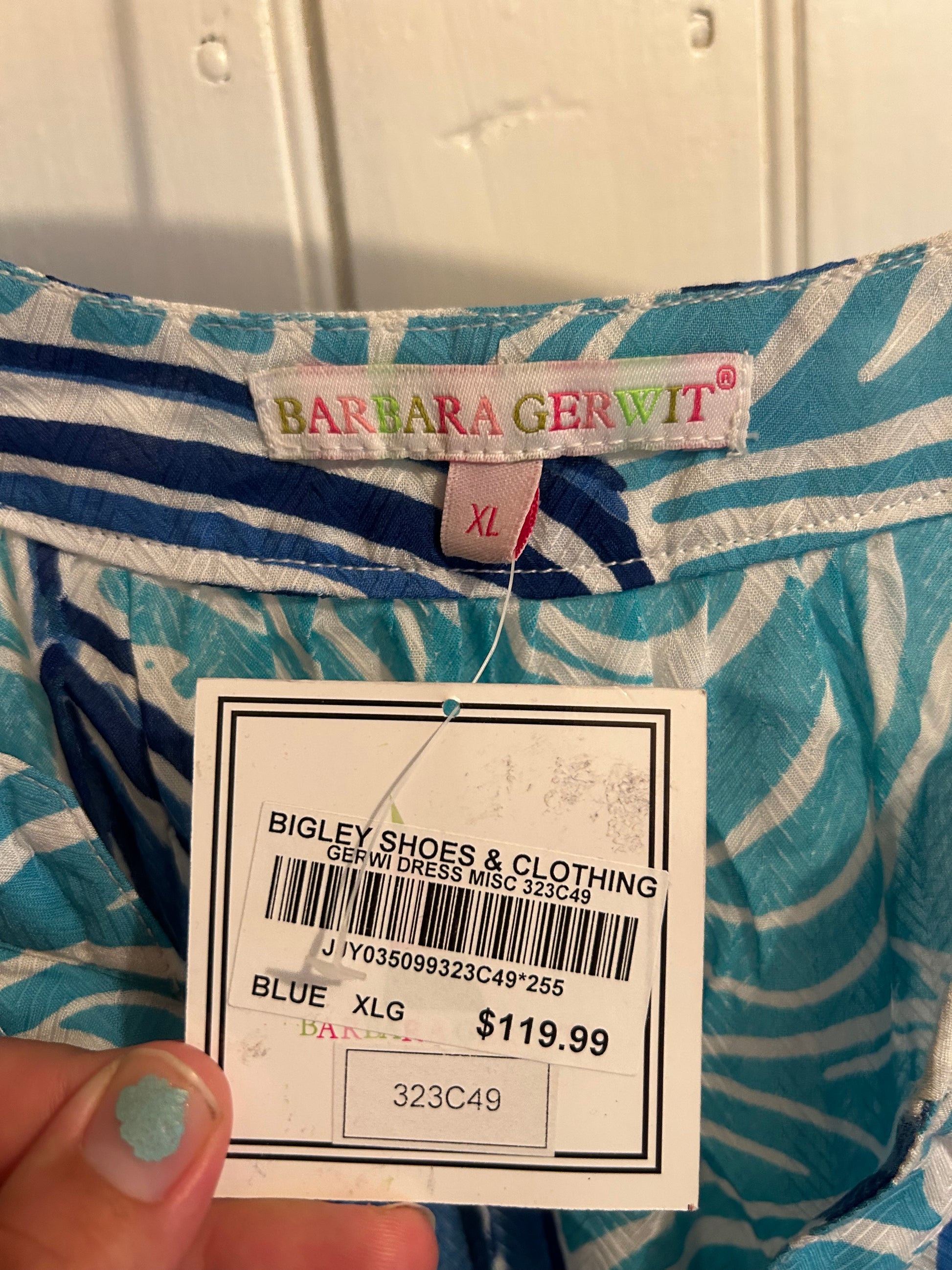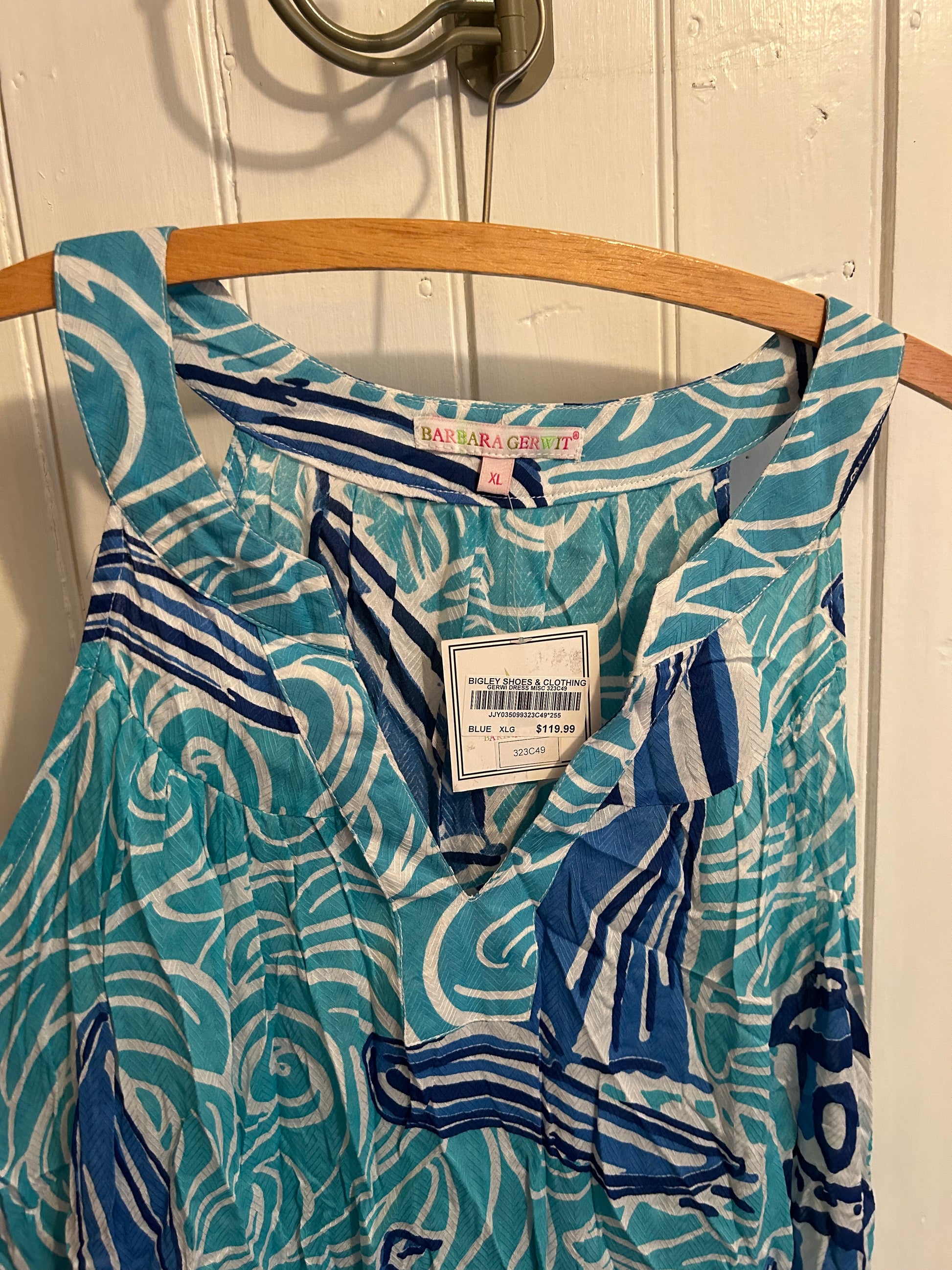 Barbara gerwit brand. Sleeveless vneck mini dress. Blue sailboat tropical print. Size xl. Brand new with tags