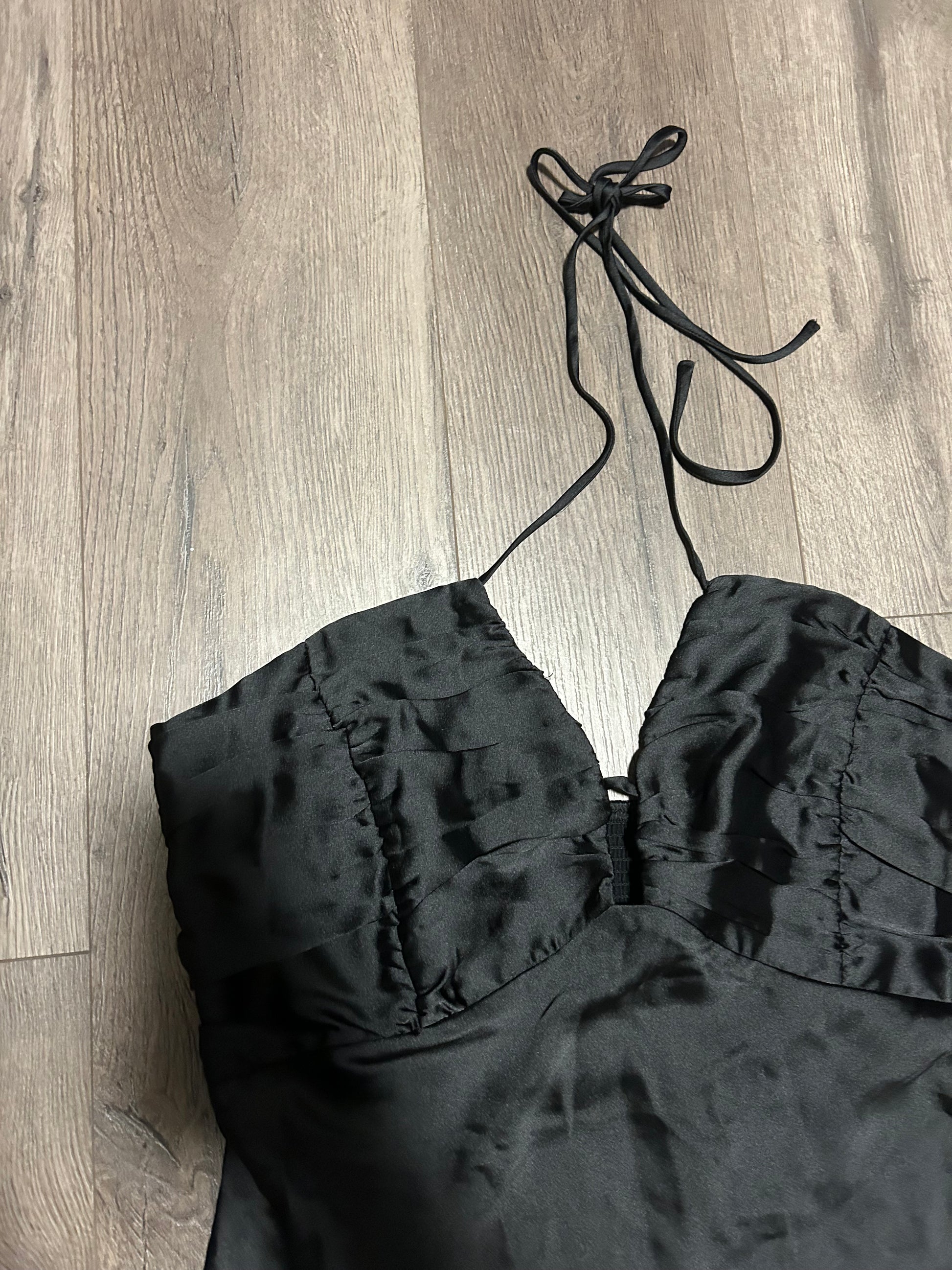 NEW dynamite xl black silk halter mini dress