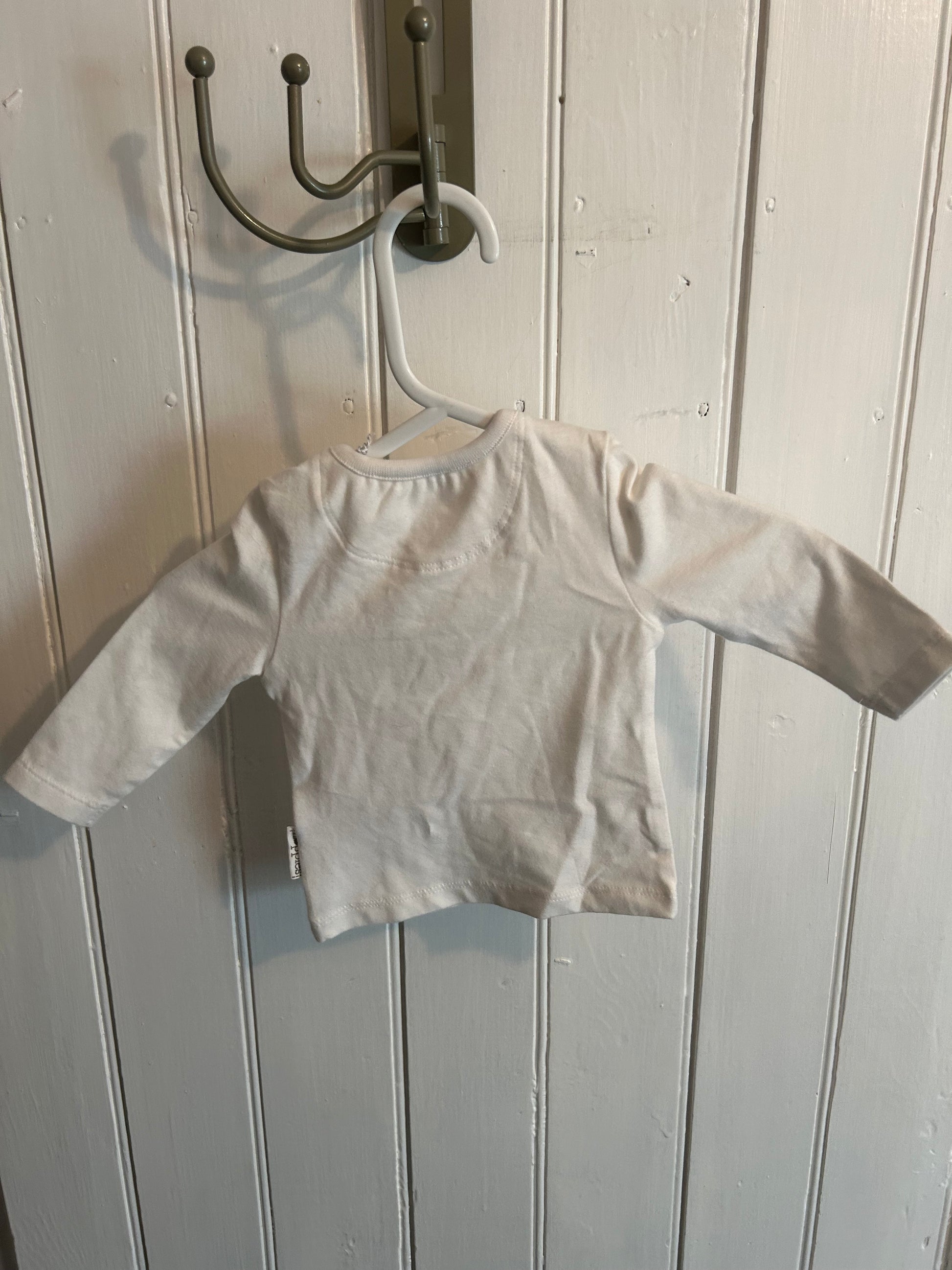 Noppies brand. Long sleeve top. White with grey flower. Size 1-2m. Brand new with tags but one small untreated spot, photographed