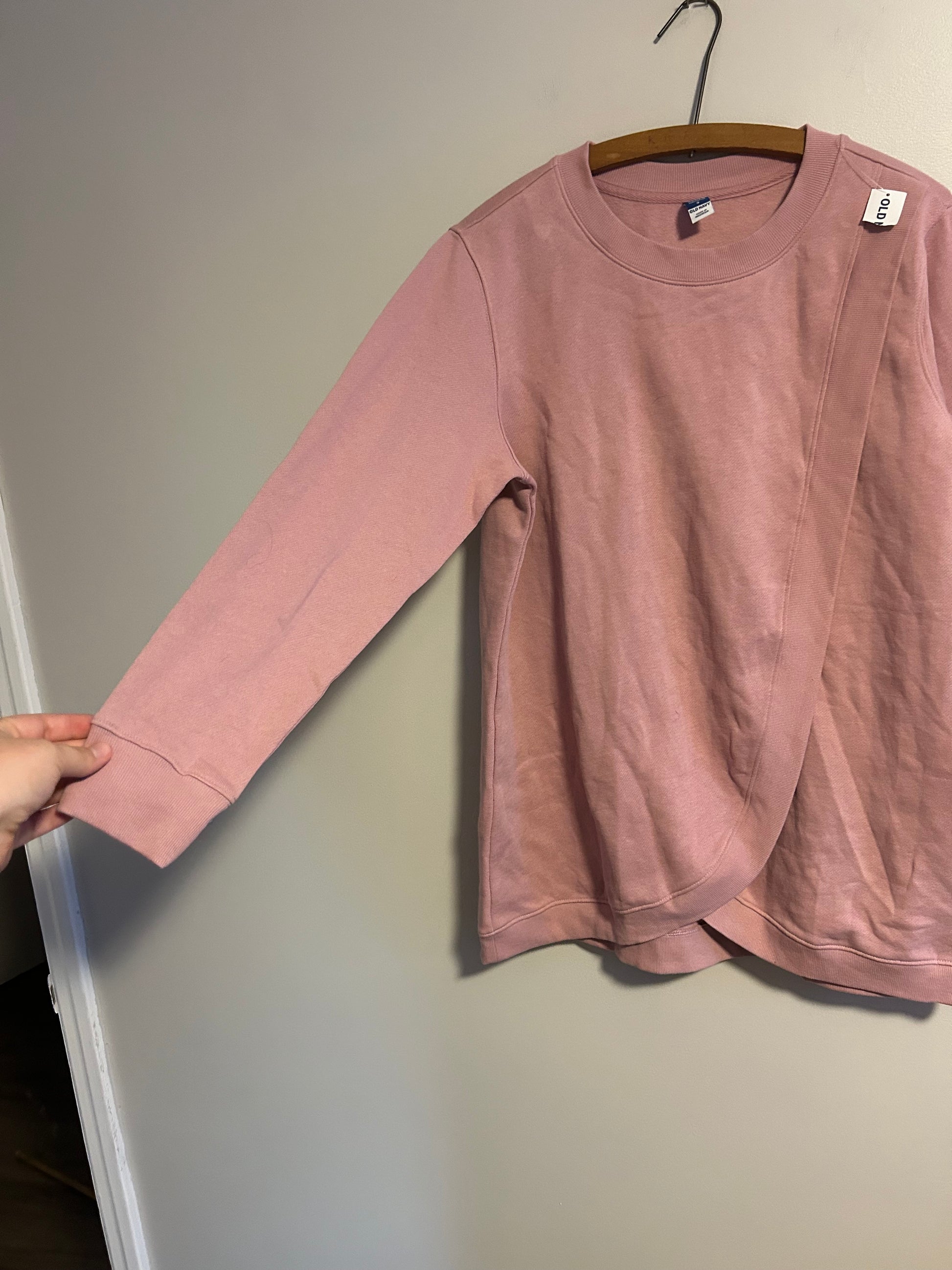 Old navy large. Open swoop maternity sweater, great for nursing but can be worn non-maternity. Size large. Light pink colour. Brand new condition