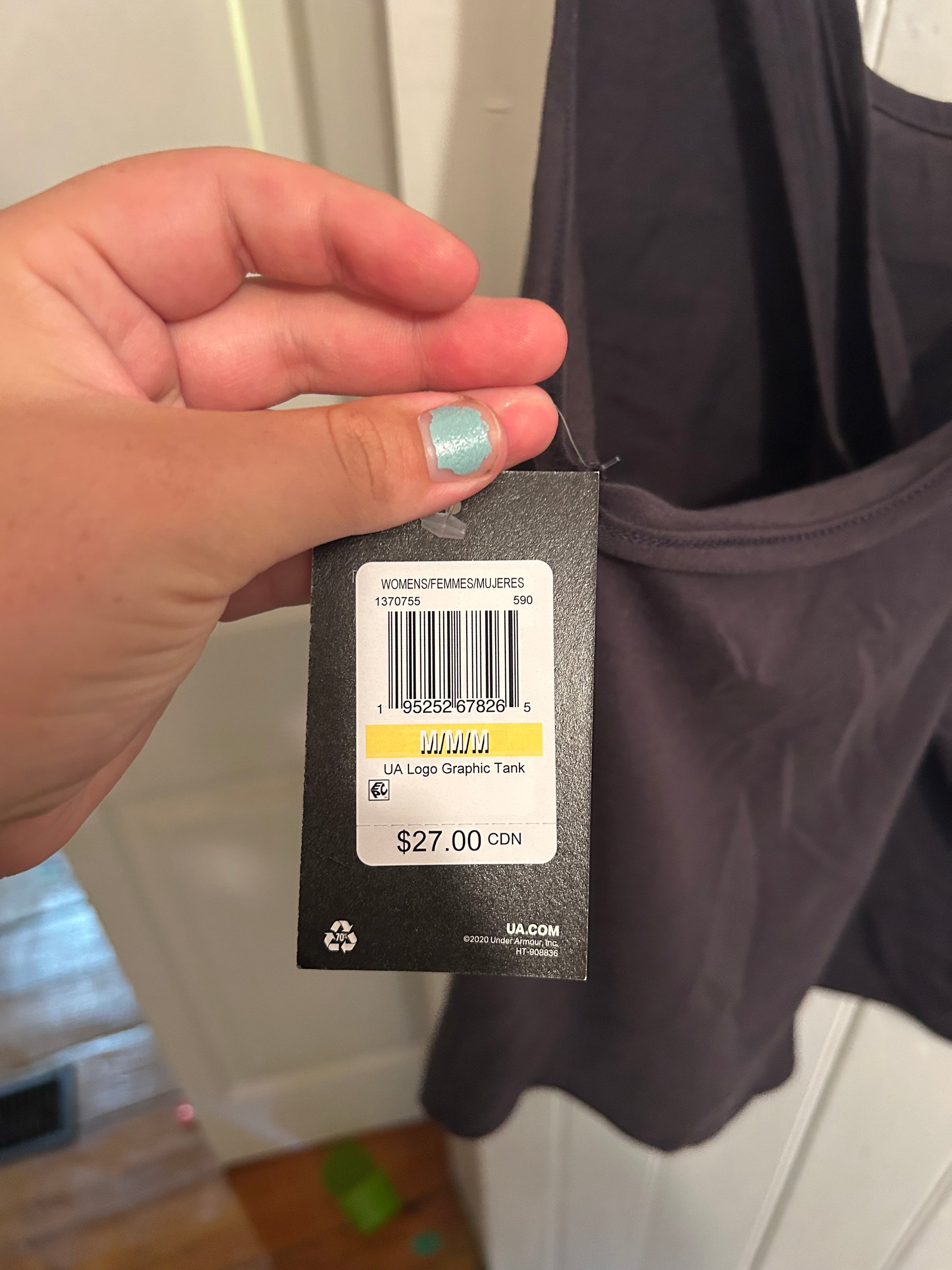 Under armour brand. Cross back tank top. Grey with purple logo. Size medium. Brand new with tags