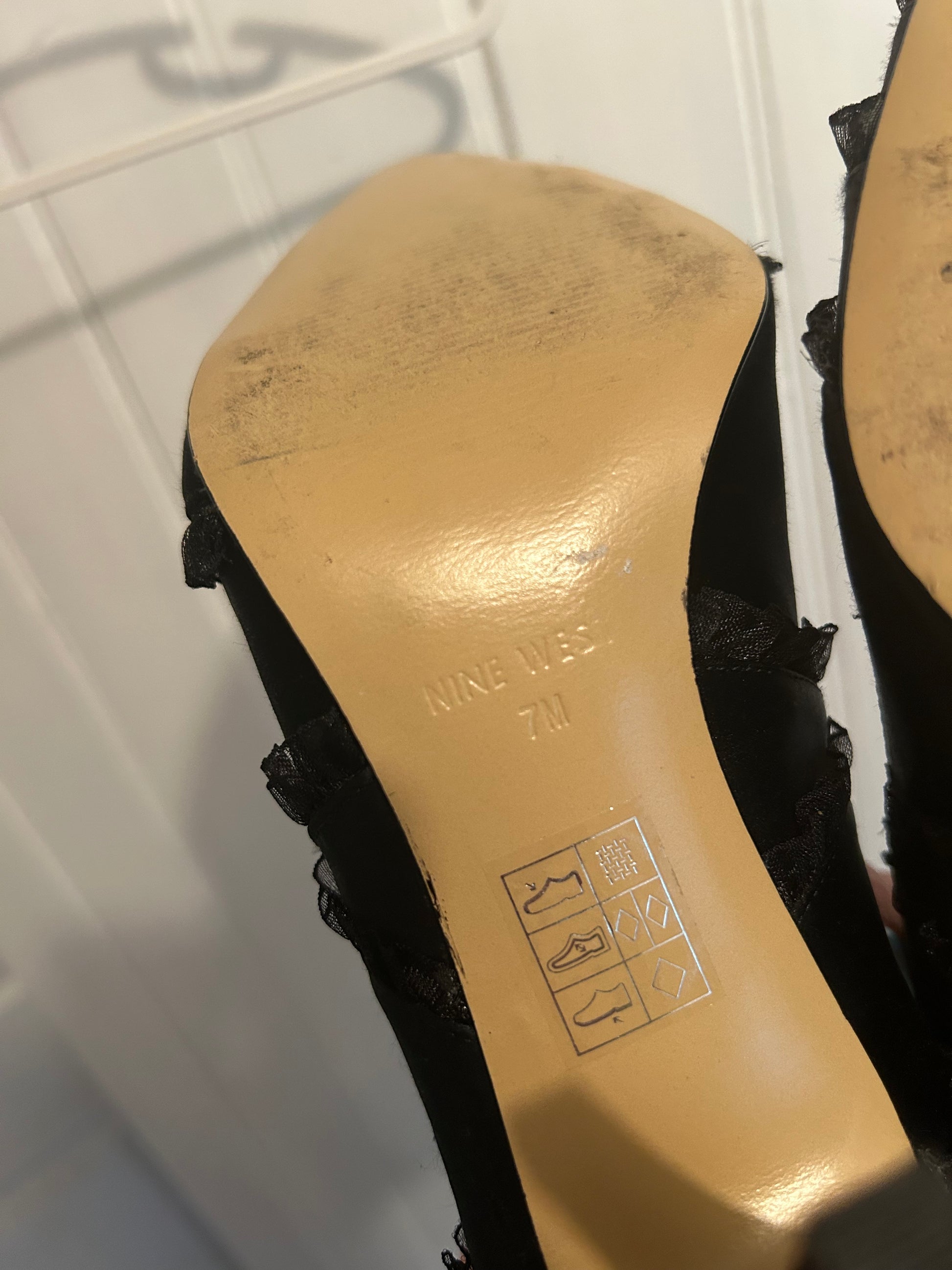 Nine West brand. Peep toe high heels. Black with ruffles. Size women’s 7. Brand new condition
