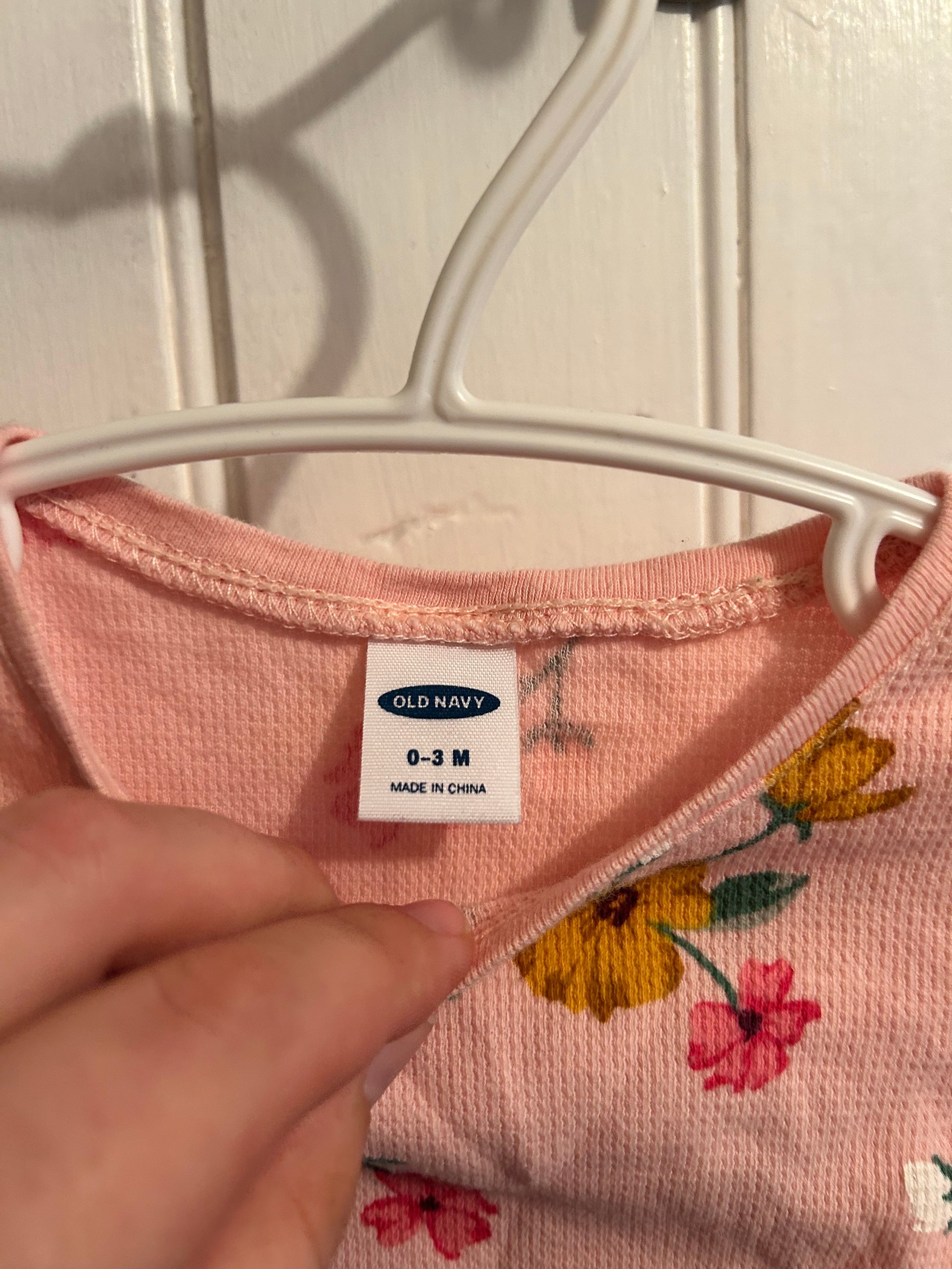 Old navy brand. Long sleeve waffle knit onesie. Pink floral. 100% cotton. Size 0/3m. Brand new condition