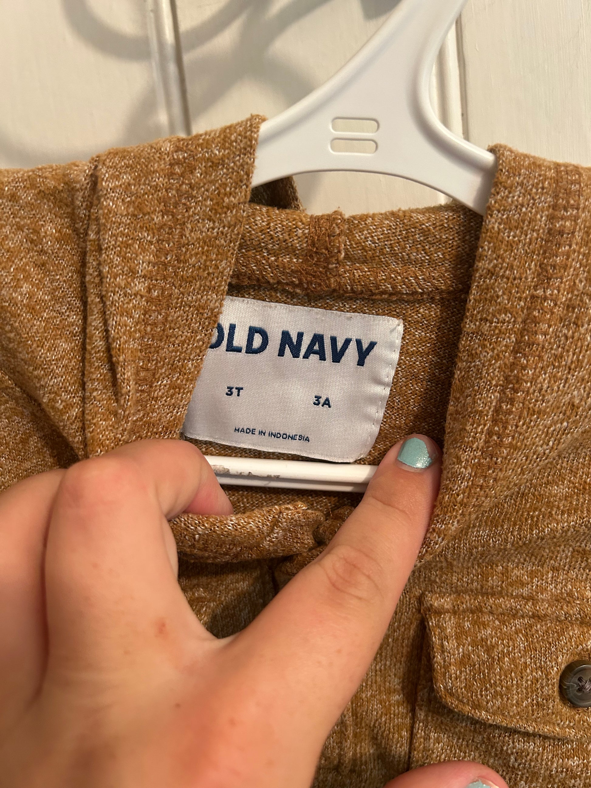 Old navy brand. Long sleeve pullover hooded shirt. Brown in colour. Size 3t. Brand new conditionÂ