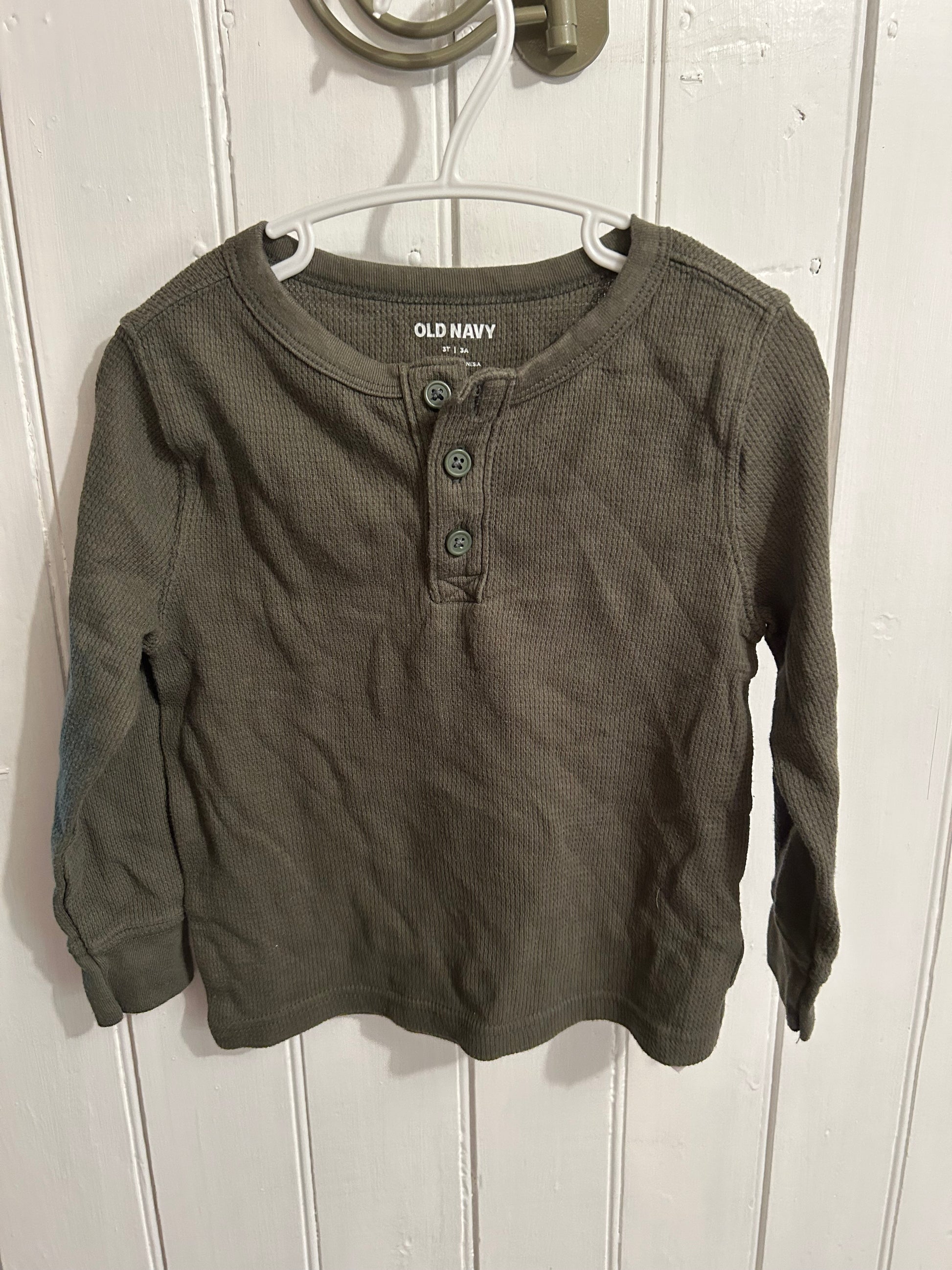 Old navy brand. Long sleeve waffle knit top. Olive green in colour. Size 3t. Brand new condition