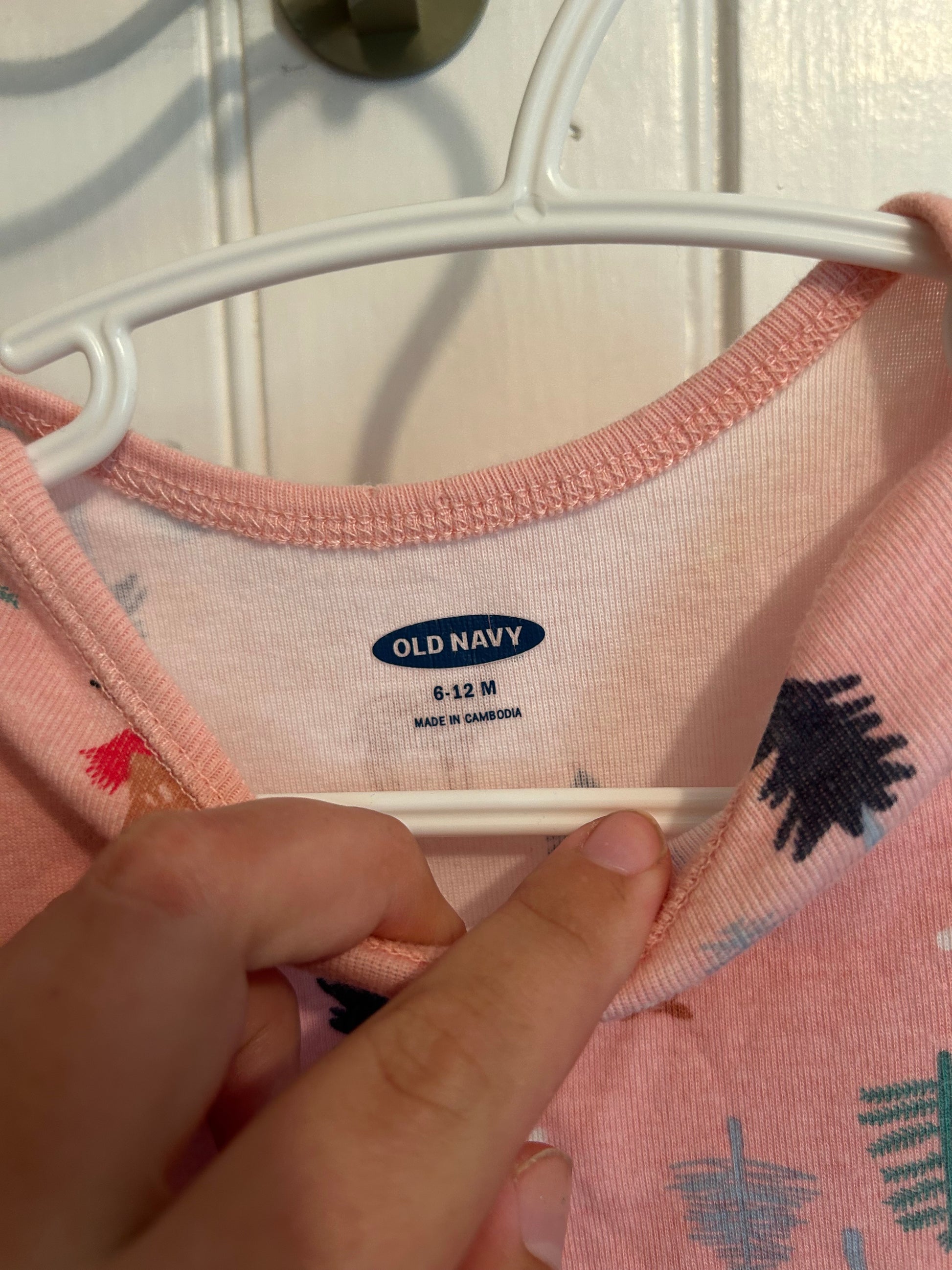 Old navy brand. Long sleeve pants romper. Pink woodland deer print. Size 6/12m. Brand new condition