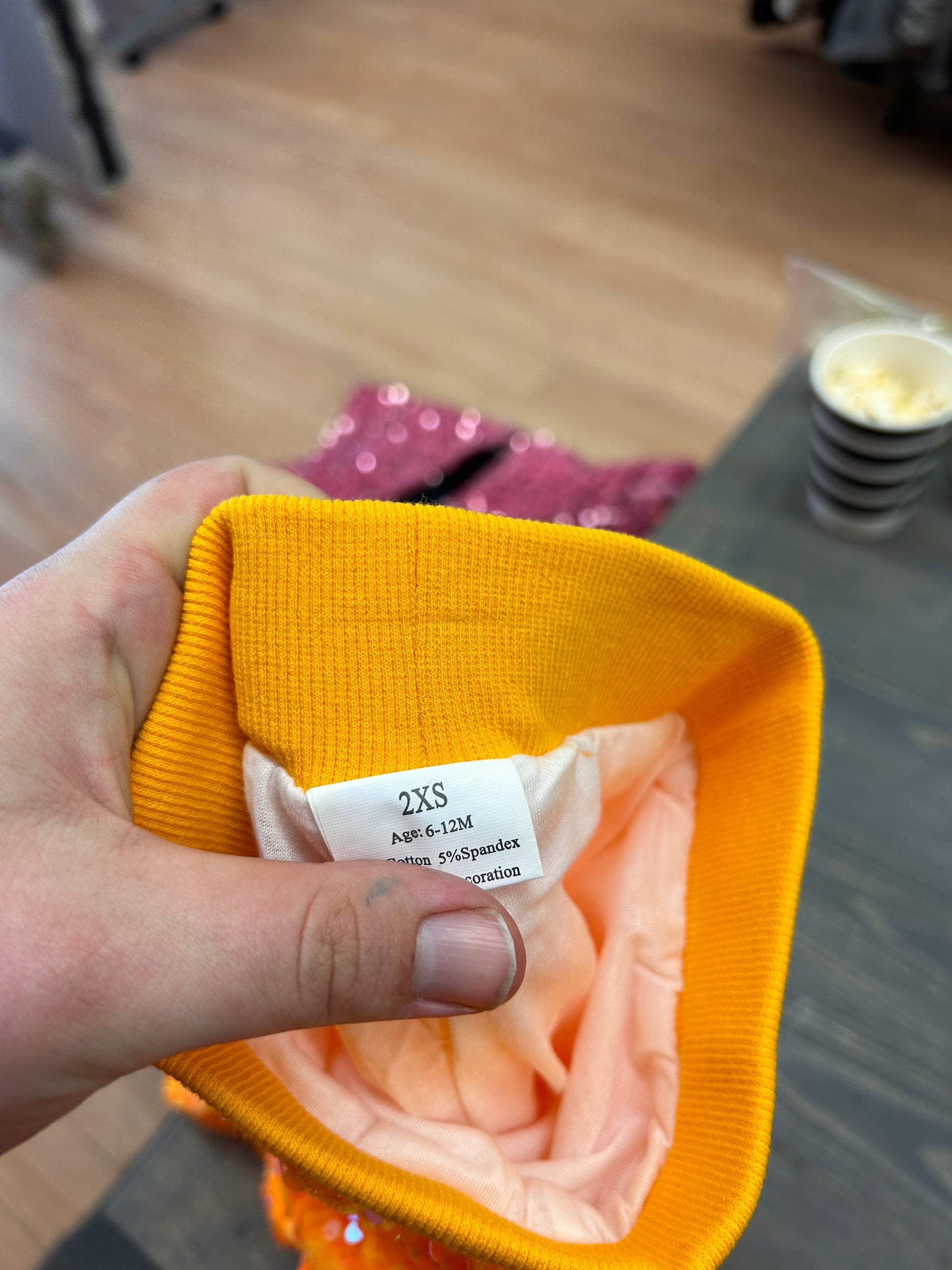 Sequin glitter bell bottoms. Neon orange. Size 6/12m. Brand new conditionÂ