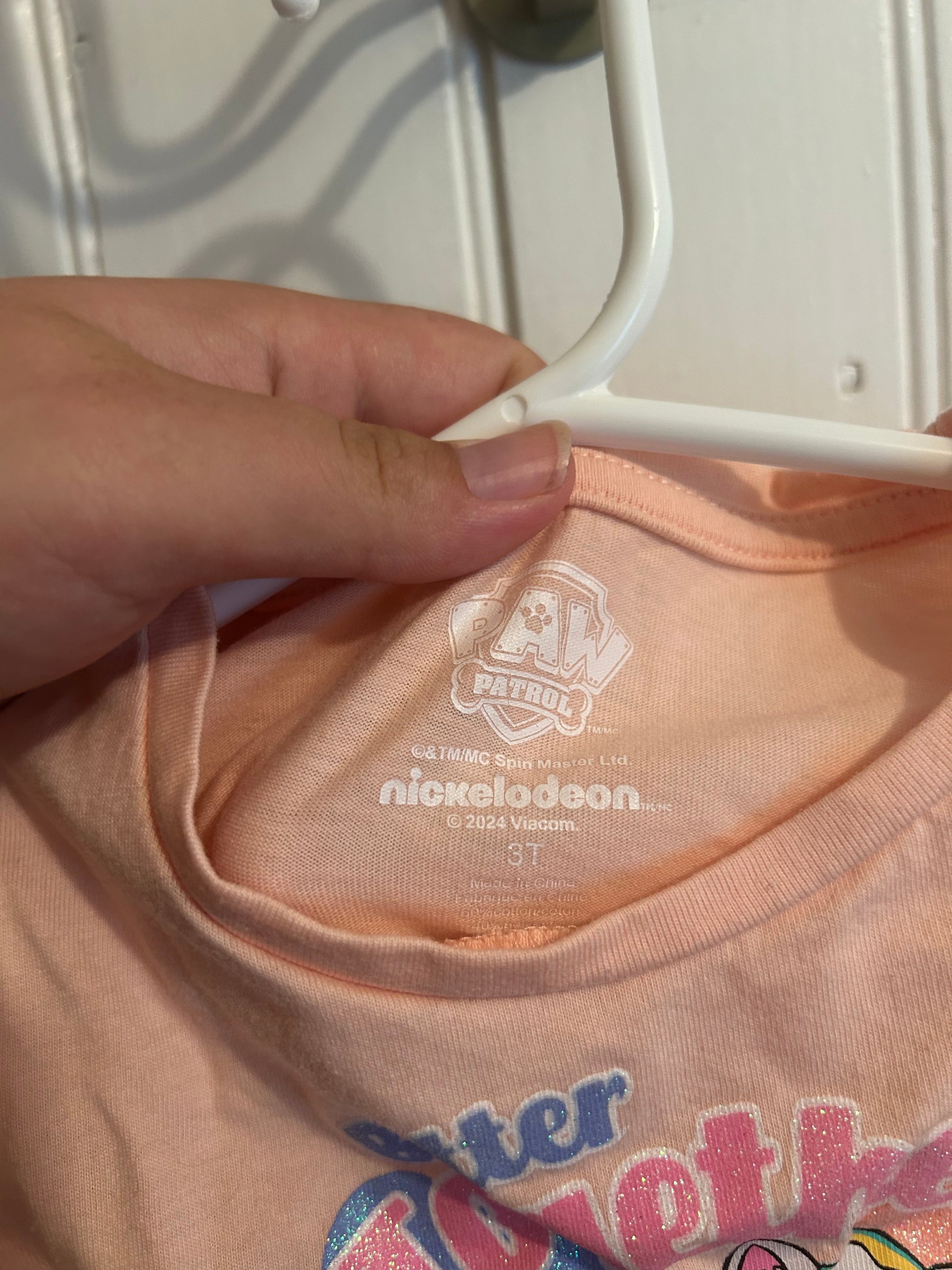 Pat patrol brand. Short sleeve tulle skirted dress. Peach top with paw patrol graphic and multicoloured skirt. Size 3t. Brand new condition