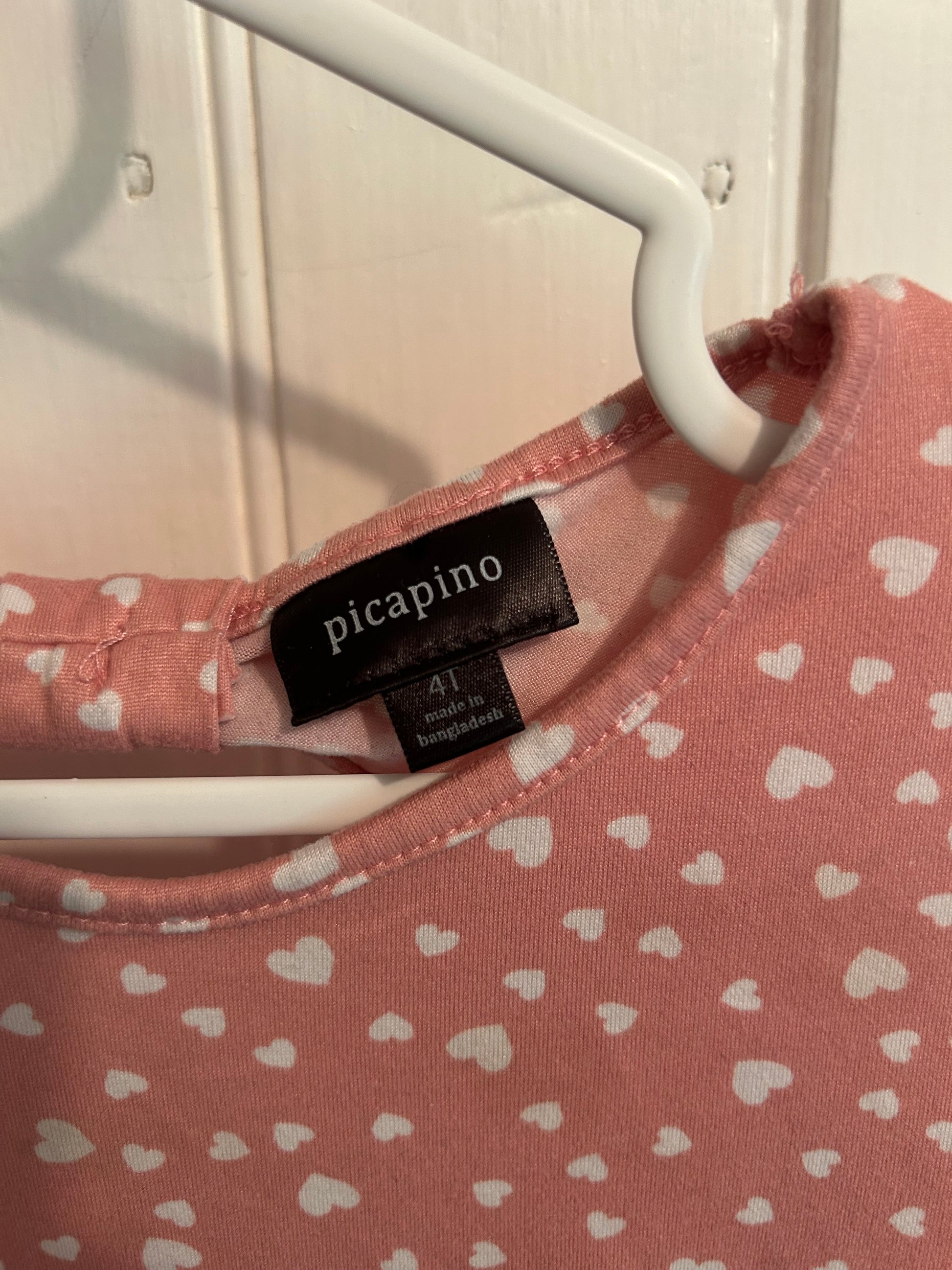 Picapino brand. Short sleeve dress. Pink with white hearts. Size 4t. Brand new conditionÂ