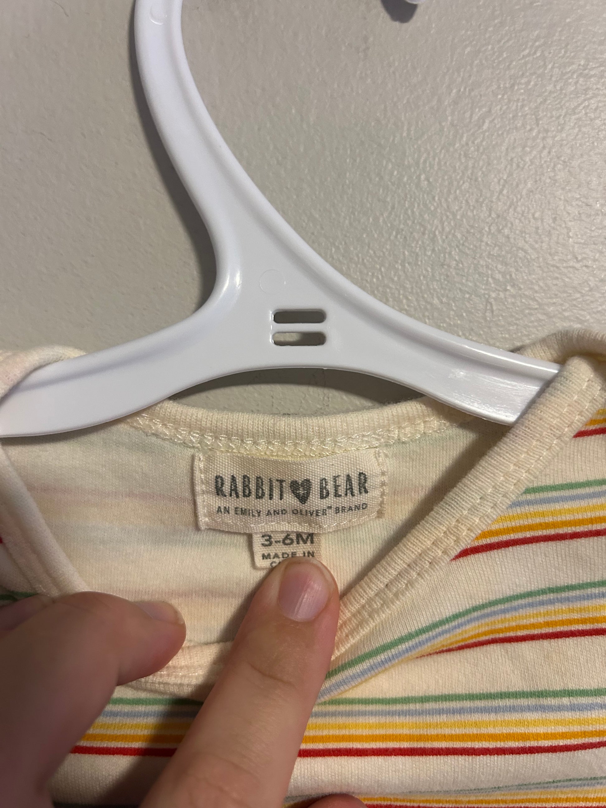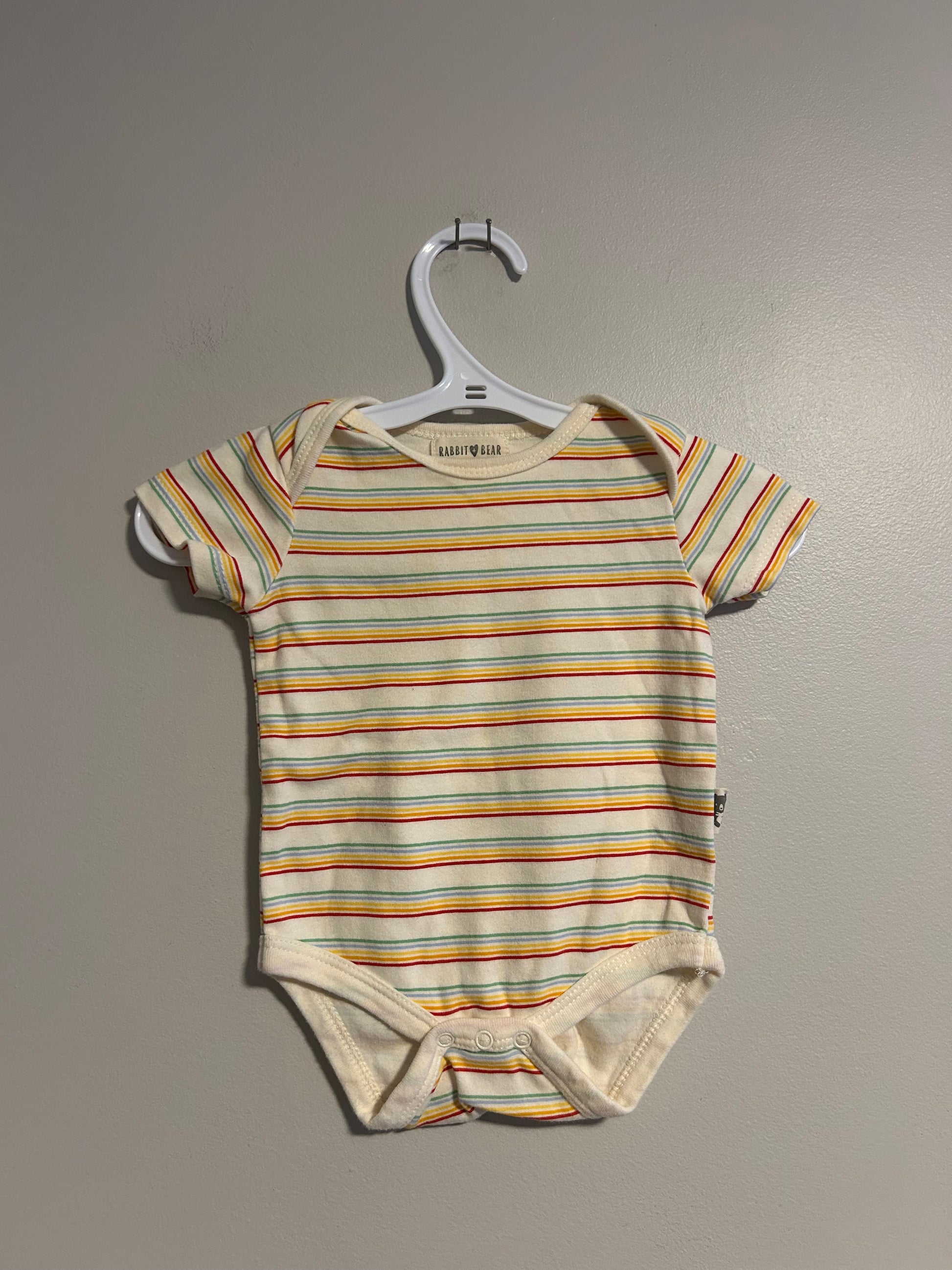 Rabbit & bear brand. Short sleeve onesie. Tan with multicoloured striped. Size 3/6m. Brand new conditionÂ
