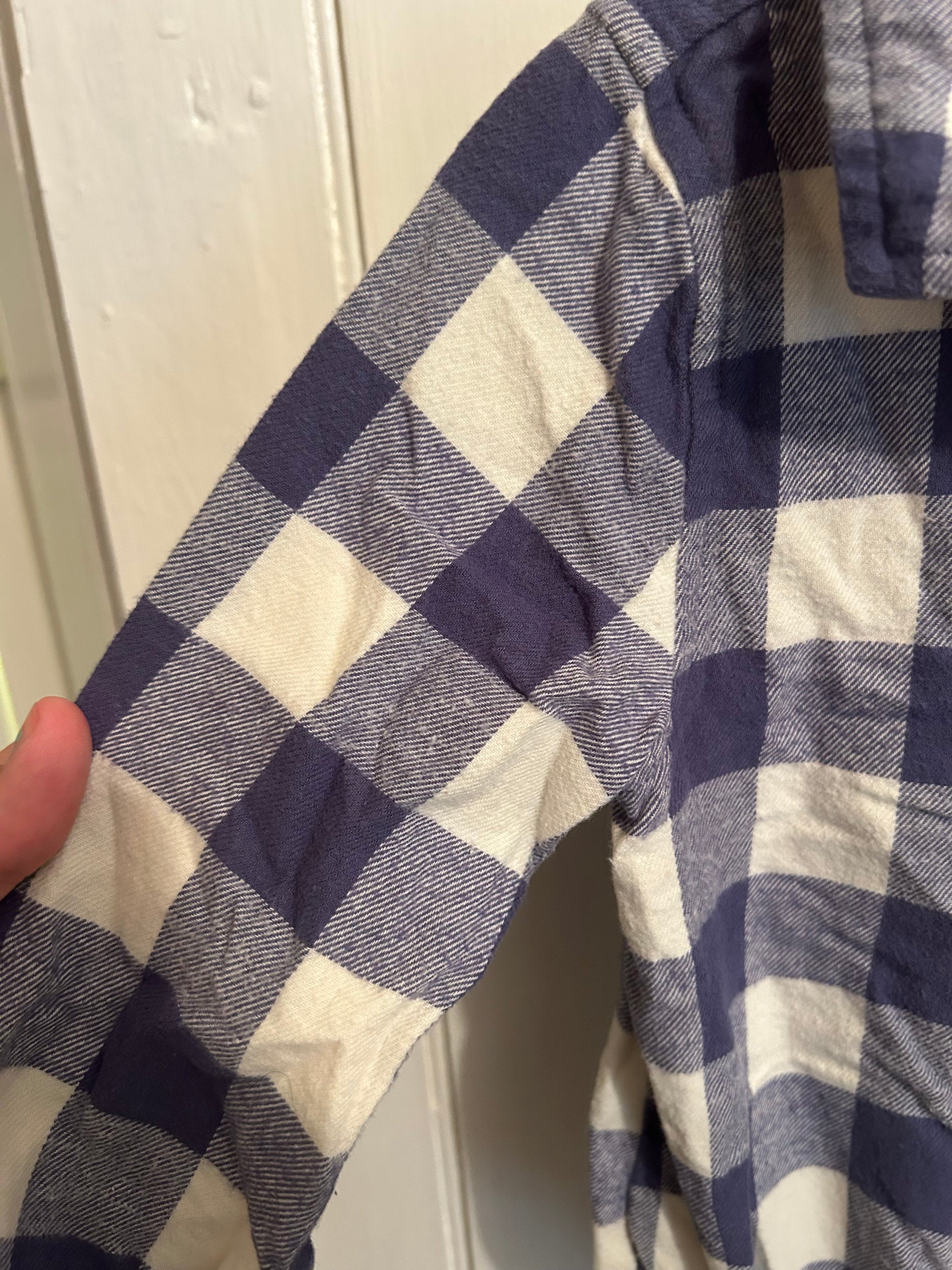 Rise little earthlings brand. Long sleeve button down flannel onesie. Purple & white plaid. Size 18/24m. Brand new condition