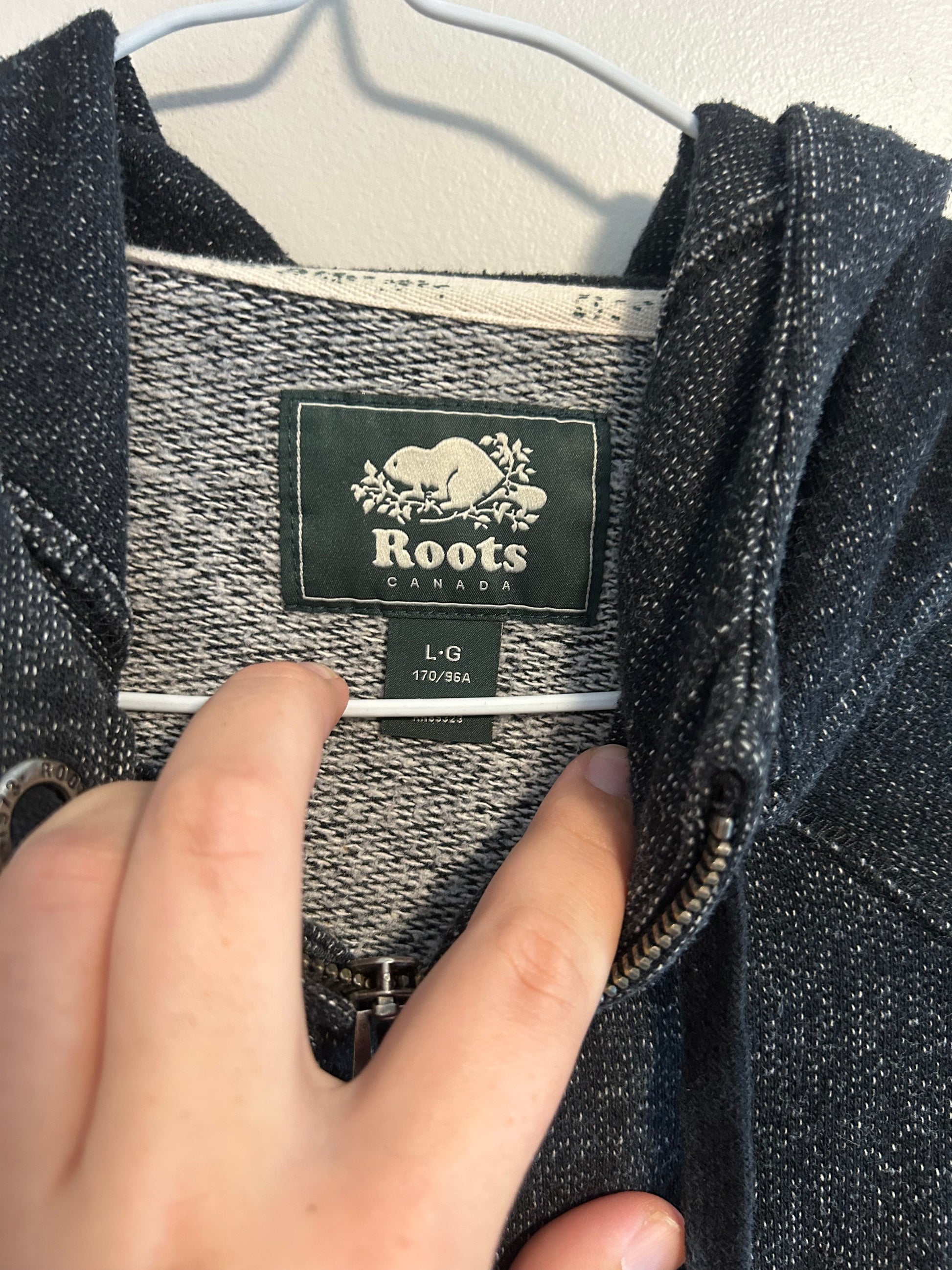 Roots women’s large black zip up hoodie sweater