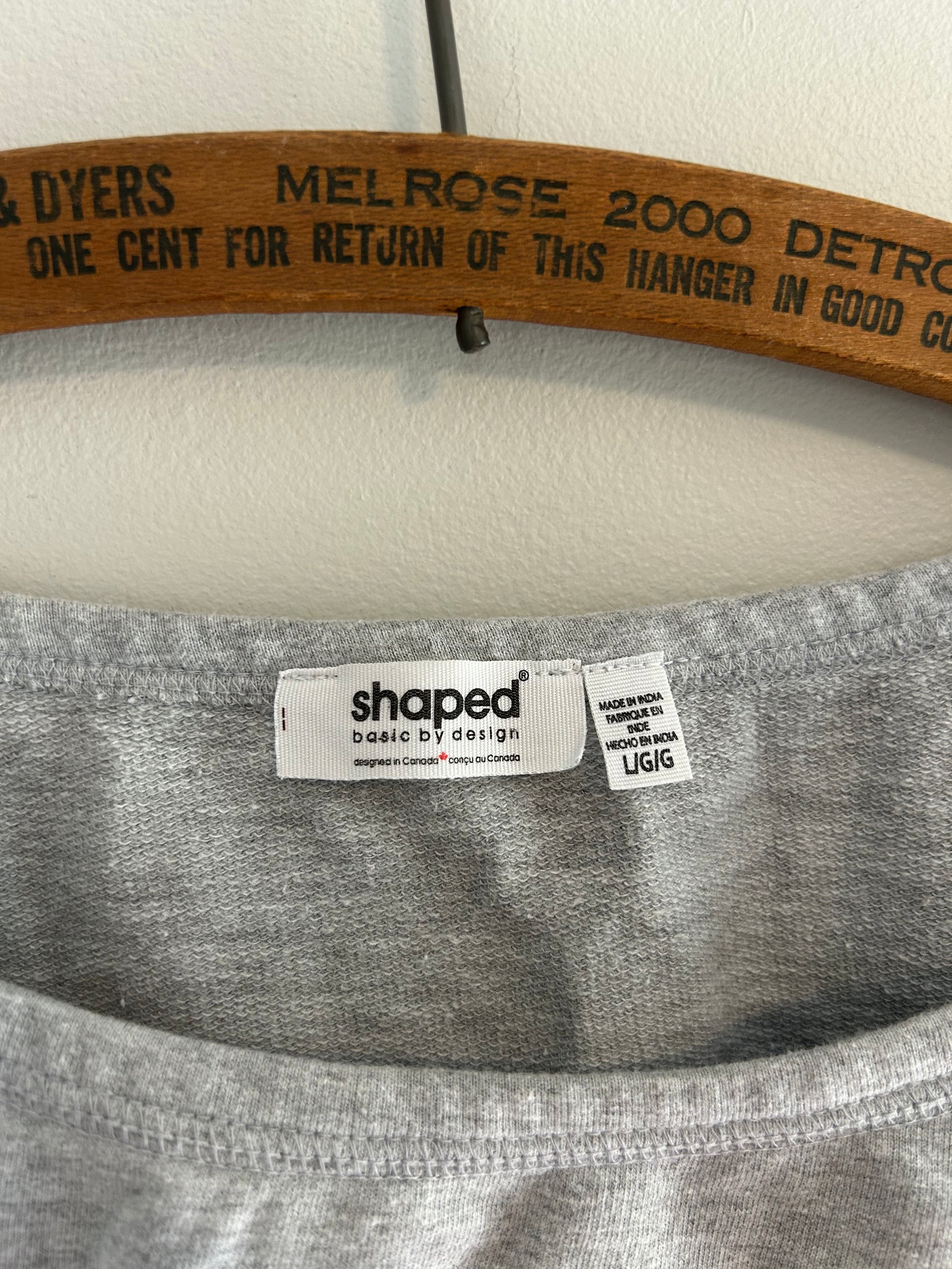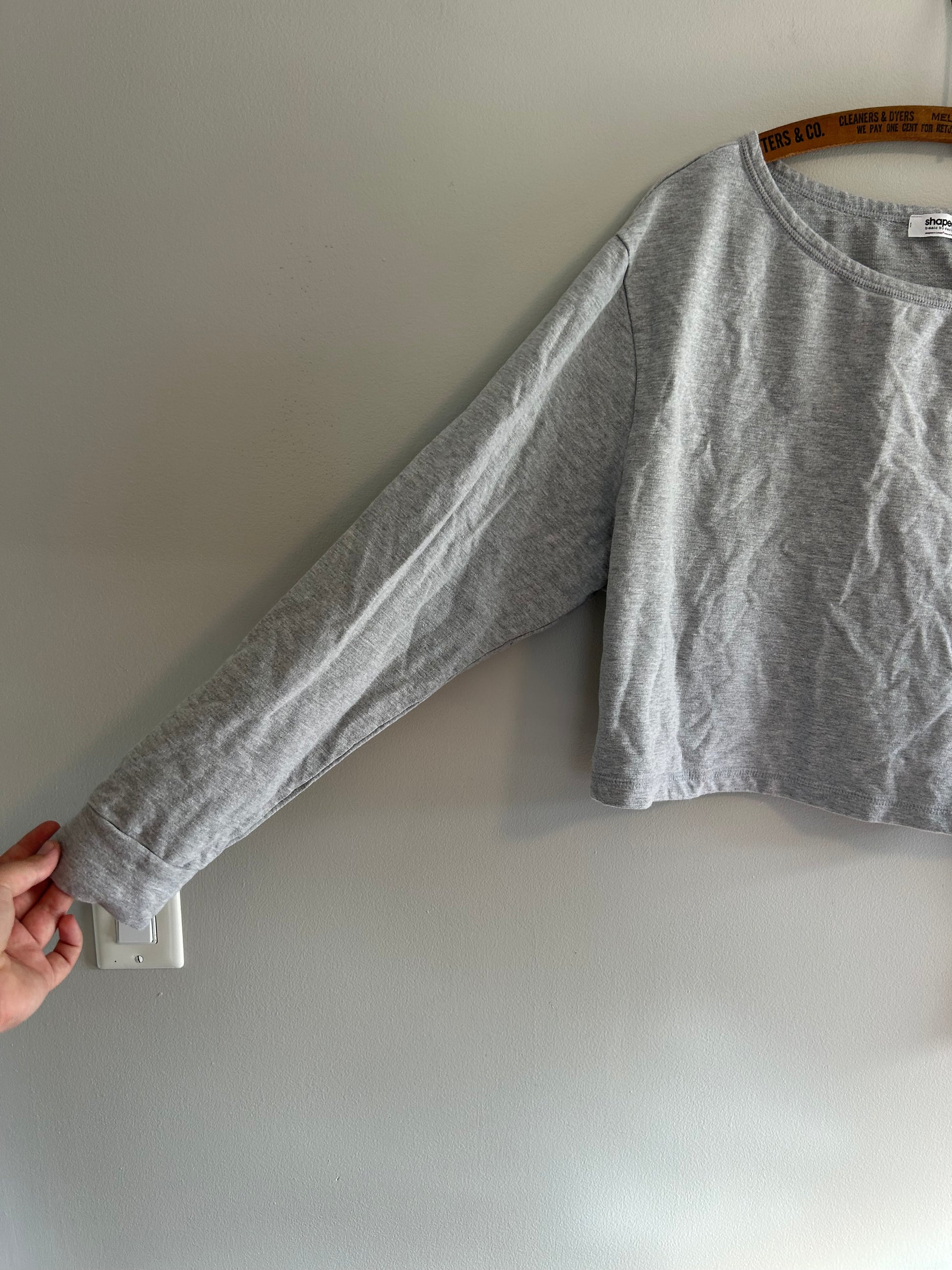 Shaped basics by design brand. Long sleeve cropped top. Grey in colour. Size large. Brand new condition