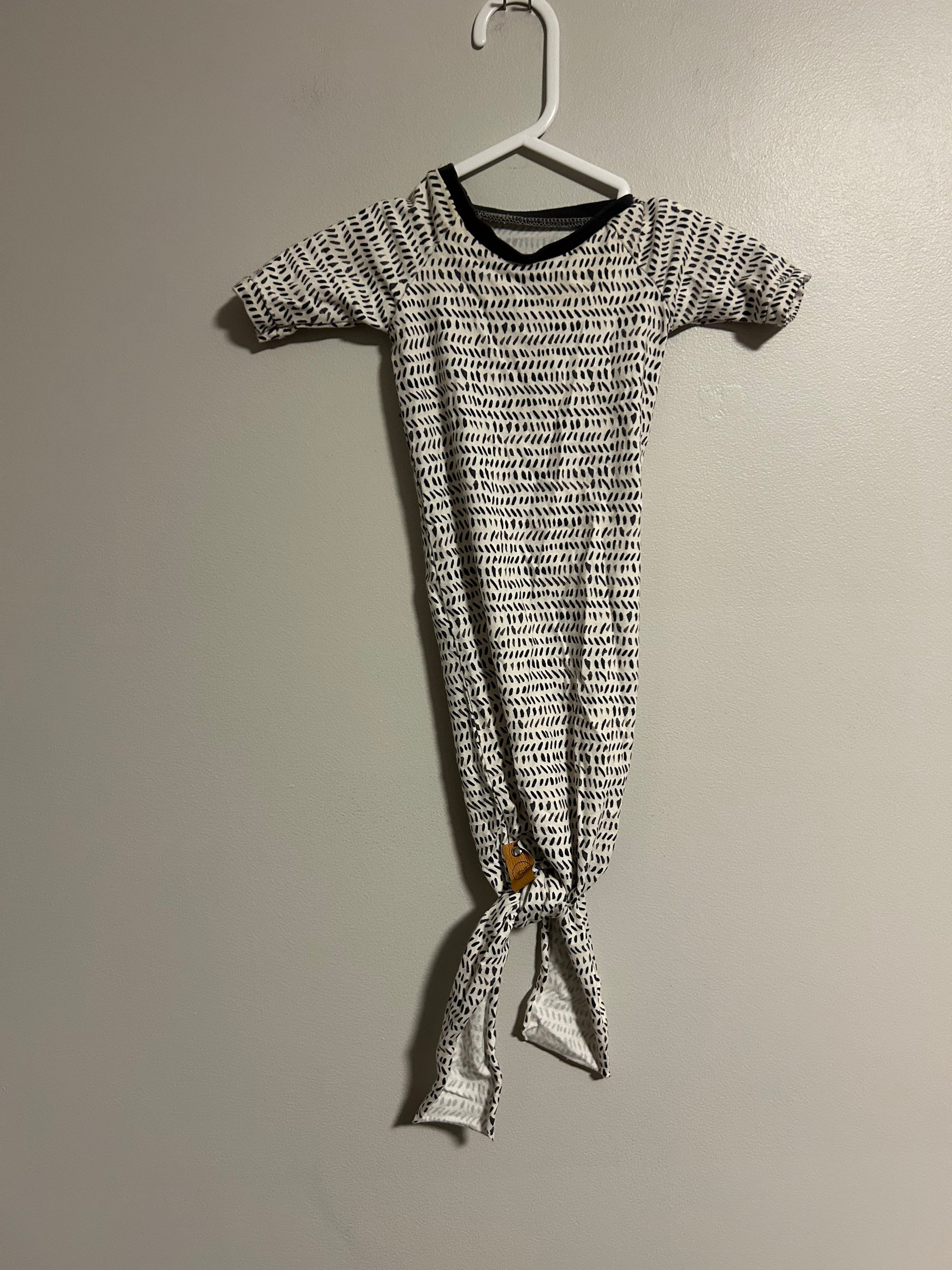 Small shop, foal kids brand. Knotted gown with matching hat. White & black polka dot prints. Size newborn. Brand new conditionÂ